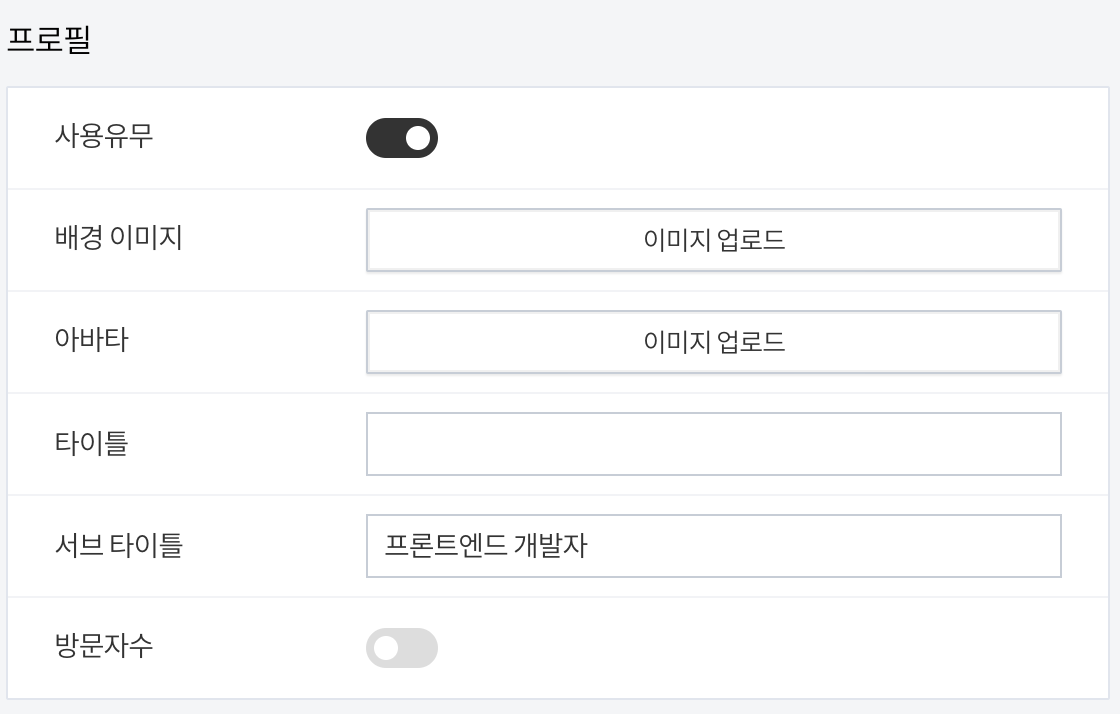 스킨 편집에서 사이드메뉴에 존재하는 모든 프로필 정보를 커스터마이징할 수 있습니다.