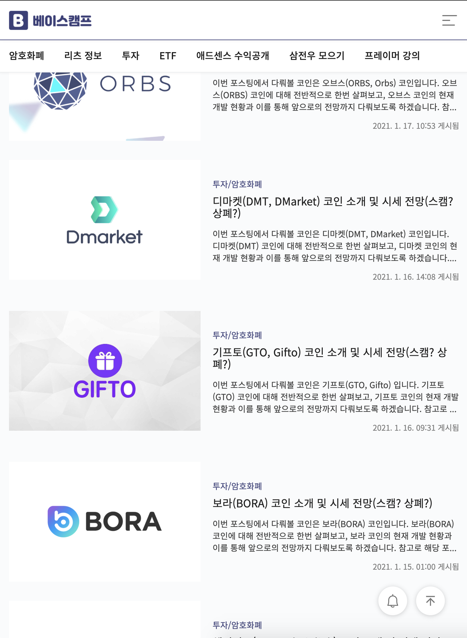 베이스캠프@1.0.0-rc8 버전부터 모바일 바텀 네비게이션을 제공합니다! 유저들은 기존보다 훨씬 편리하게 사이트를 이용할 수 있습니다. 현재 추천글 부분은 제공하지 않고, 1.0.0-rc9 버전부터 추천글 버튼 기능을 제공할 예정이니 참고해주세요!