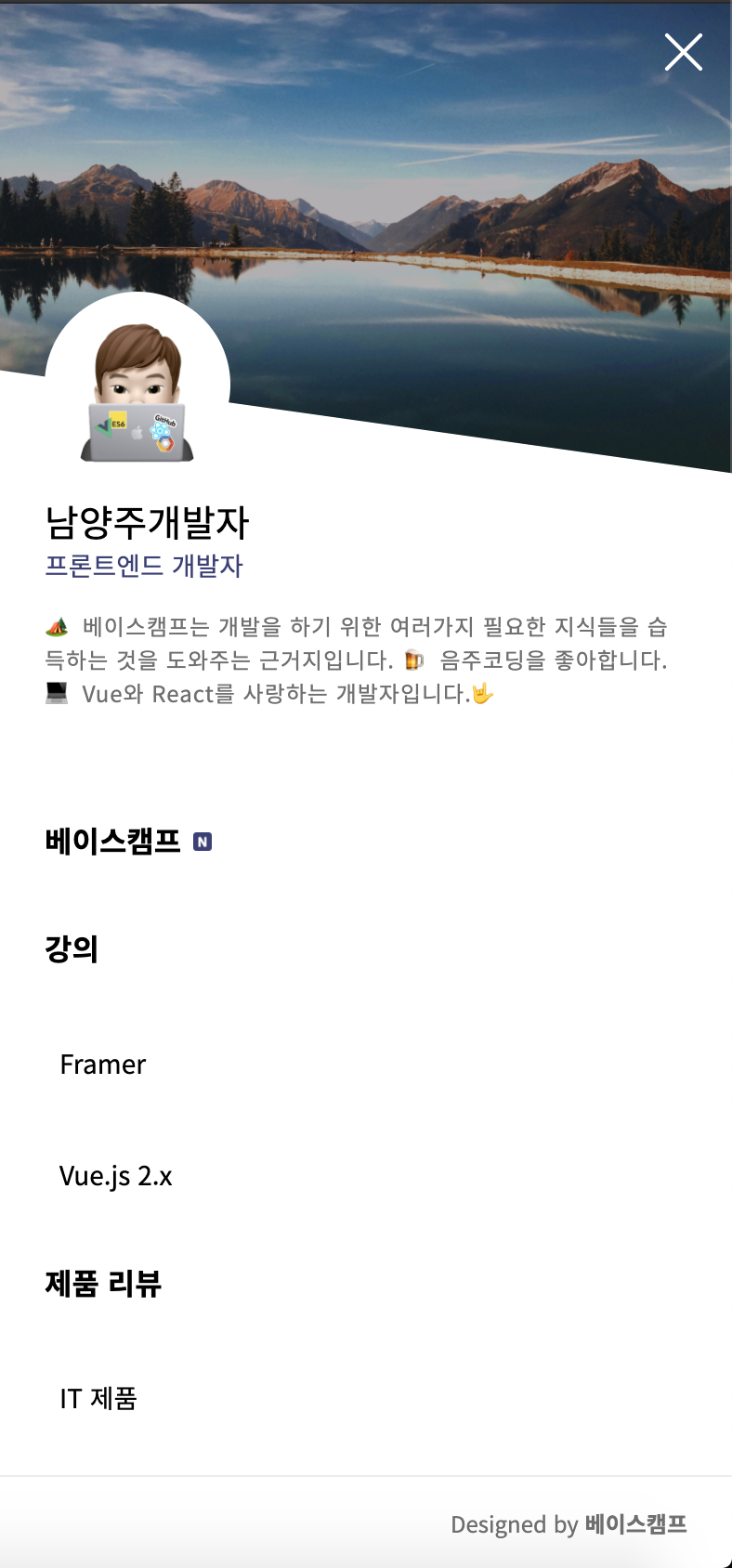 하단 푸터(Footer)에 존재하는 "Designed by 베이스캠프" 표기는 고정해야하며, 해당 사항을 어기는 사용자가 발생 시 해당 스킨의 무료 배포가 중단될 수 있으며 업데이트 및 개선사항 반영도 진행되지 않는다는 점 유의하시기 바랍니다. "Designed by 베이스캠프"를 제외한 카피라이트 문구는 스킨 편집에서 수정할 수 있으니 자유롭게 문구 변경하셔도 무방합니다.