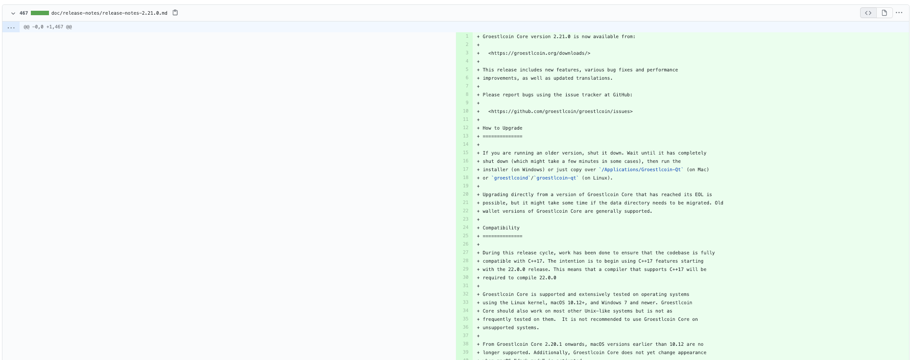 비트코인 0.21.0 릴리즈 노트와 그로스톨 2.21.0 릴리즈 노트를 비교하면 정말 코인 이름 빼고는 그냥 똑같습니다.