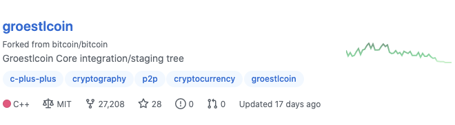 그로스톨코인(GRS) 개발 현황을 한번 살펴보도록 하겠습니다. 그로스톨코인의 깃허브 프로젝트는 아래 링크에서 확인할 수 있습니다.