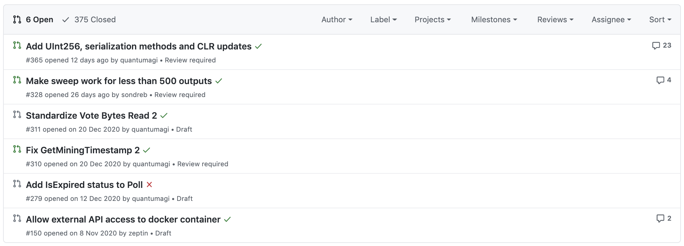 프로젝트에서 가장 중요한 부분은 개인적으로 버그나 개선사항이 생겼을 때 이슈를 작성하고 관리하는 것이라고 생각합니다. 이슈를 활용해서 프로젝트에서 발생되는 모든 문제들을 관리할 수 있습니다. 프로젝트에서 이슈들까지 제대로 관리하고 있다면 해당 코인을 개발하는 개발진들의 개발 참여도는 굉장히 긍정적으로 보인다고 말씀드리고 싶습니다.