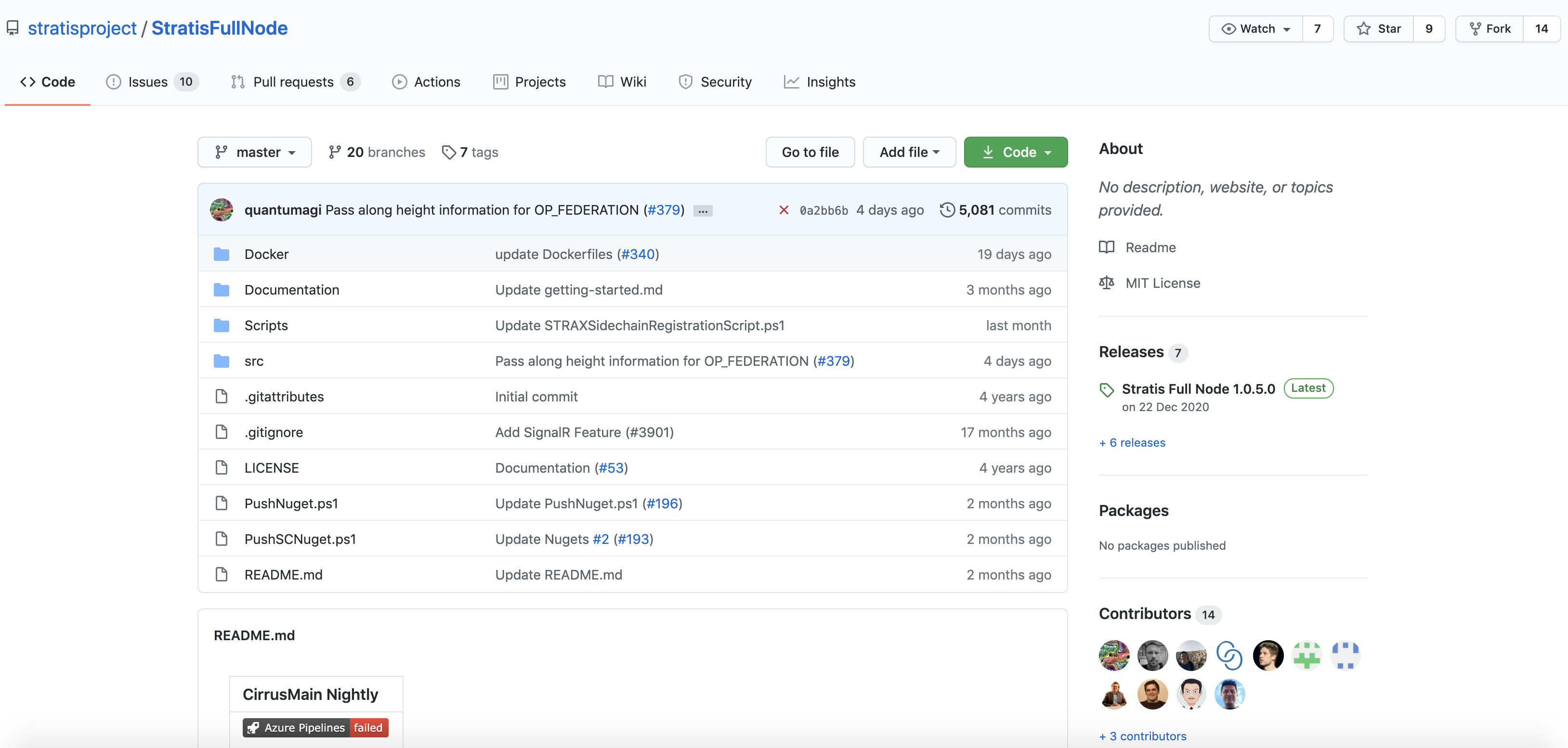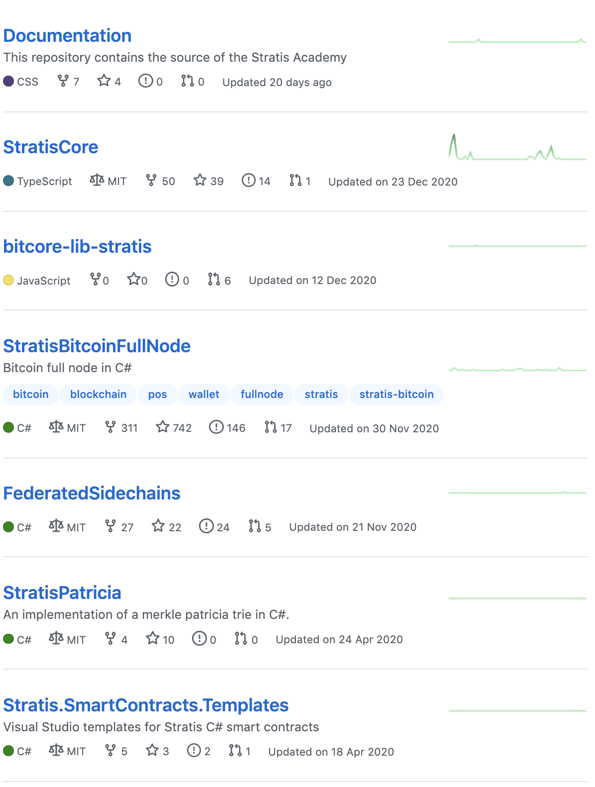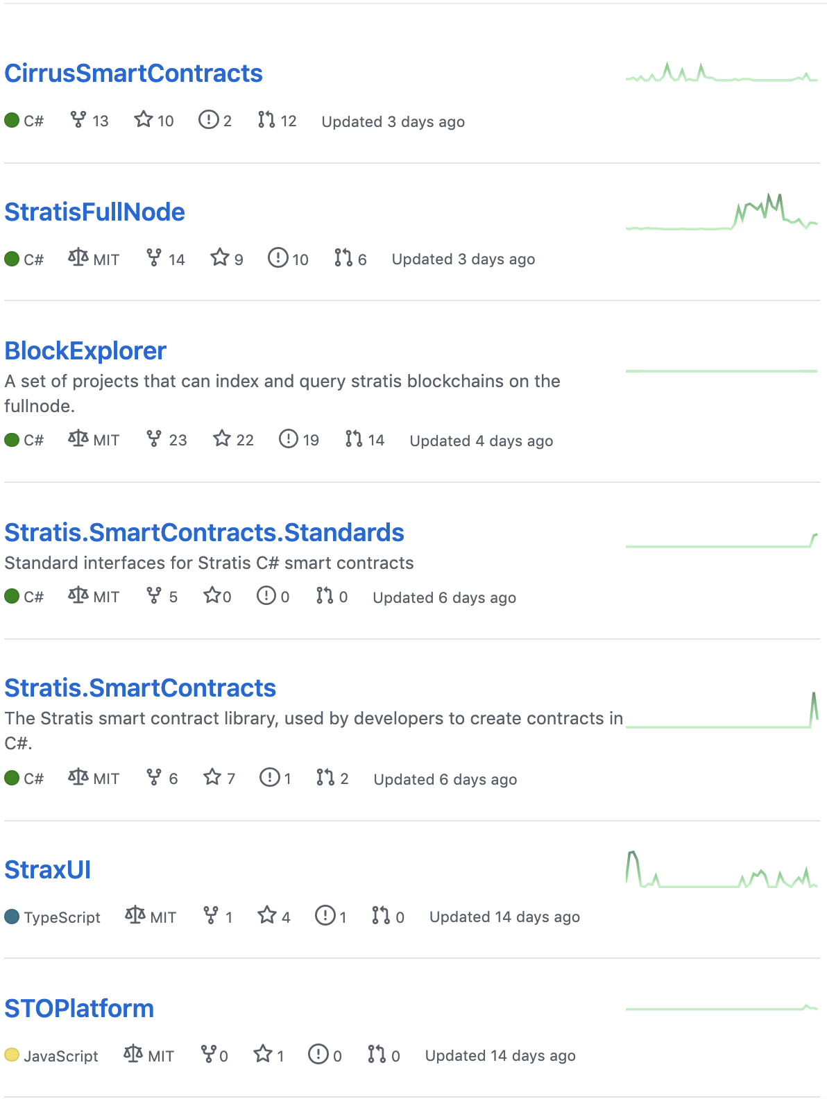 스트라티스(STRAX) 코인 개발 현황을 한번 살펴보도록 하겠습니다. 스트라티스 코인의 깃허브 프로젝트는 아래 링크에서 확인할 수 있습니다. 스트라티스 코인은 예전부터 기술력이 굉장히 좋다고 평가를 받아왔는데 어느정도 수준일지 기대가 됩니다. (사실 고점대비 굉장히 가격 하락폭이 큰 코인중에 하나입니다. 가격이 회복되지 않고, 현재 시장에서 잊혀져가고 있는 것 같은...)