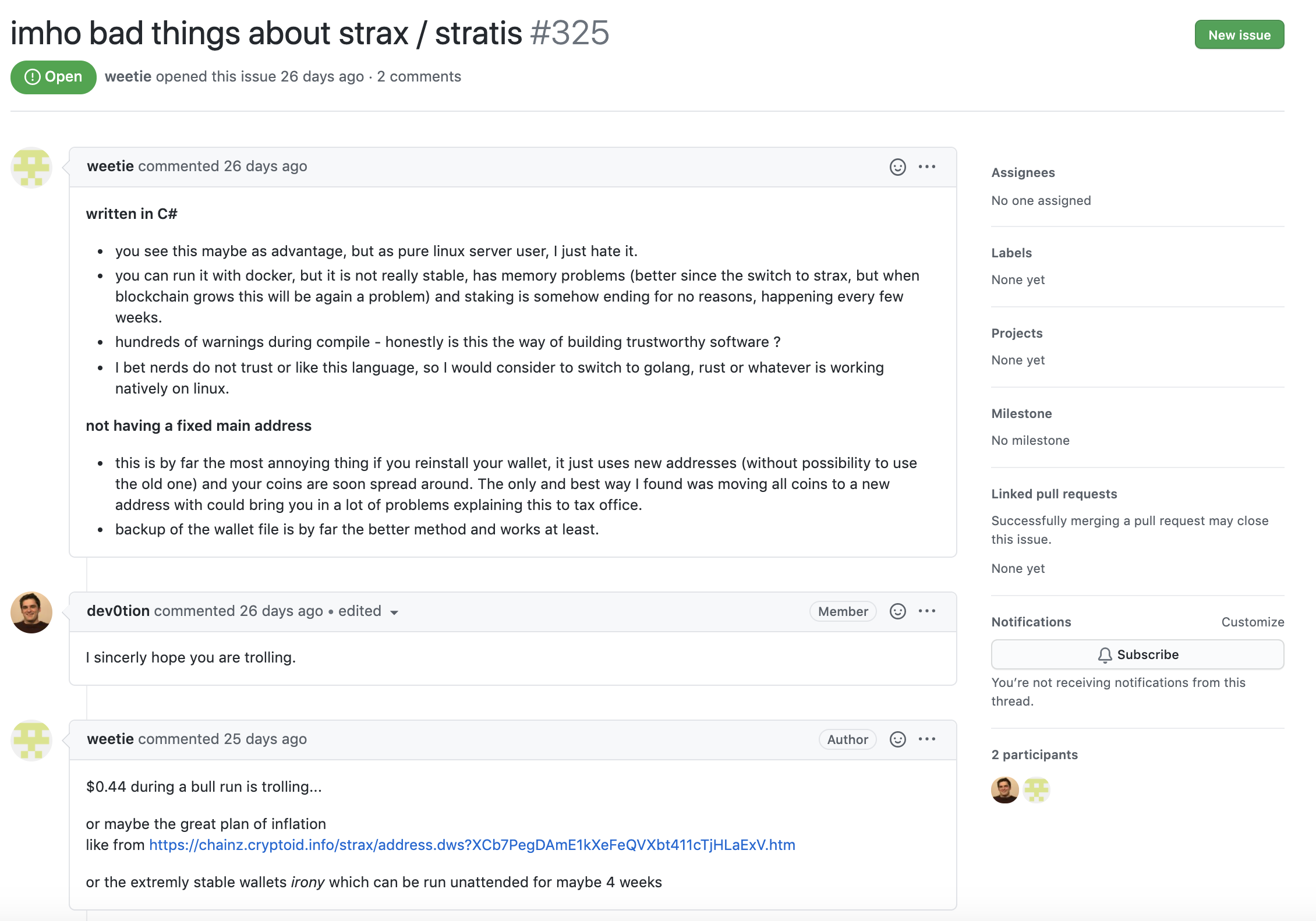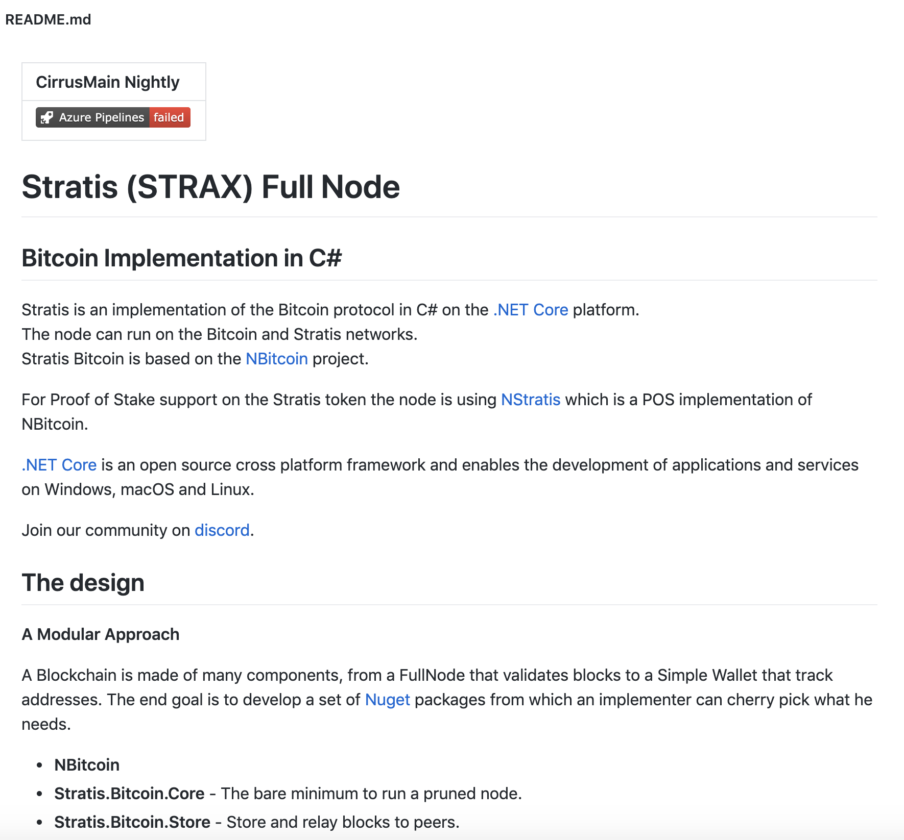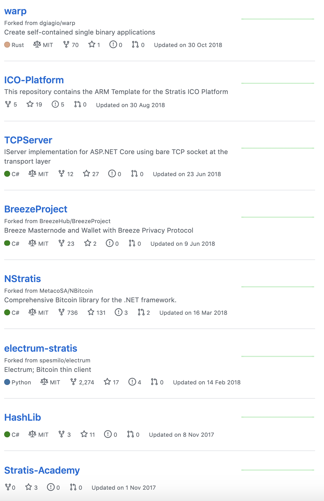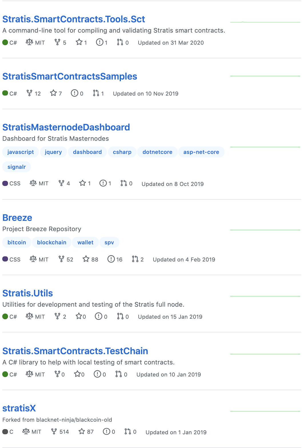 스트라티스(STRAX) 코인 개발 현황을 한번 살펴보도록 하겠습니다. 스트라티스 코인의 깃허브 프로젝트는 아래 링크에서 확인할 수 있습니다. 스트라티스 코인은 예전부터 기술력이 굉장히 좋다고 평가를 받아왔는데 어느정도 수준일지 기대가 됩니다. (사실 고점대비 굉장히 가격 하락폭이 큰 코인중에 하나입니다. 가격이 회복되지 않고, 현재 시장에서 잊혀져가고 있는 것 같은...)