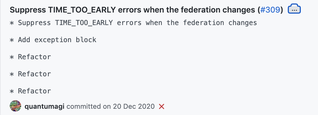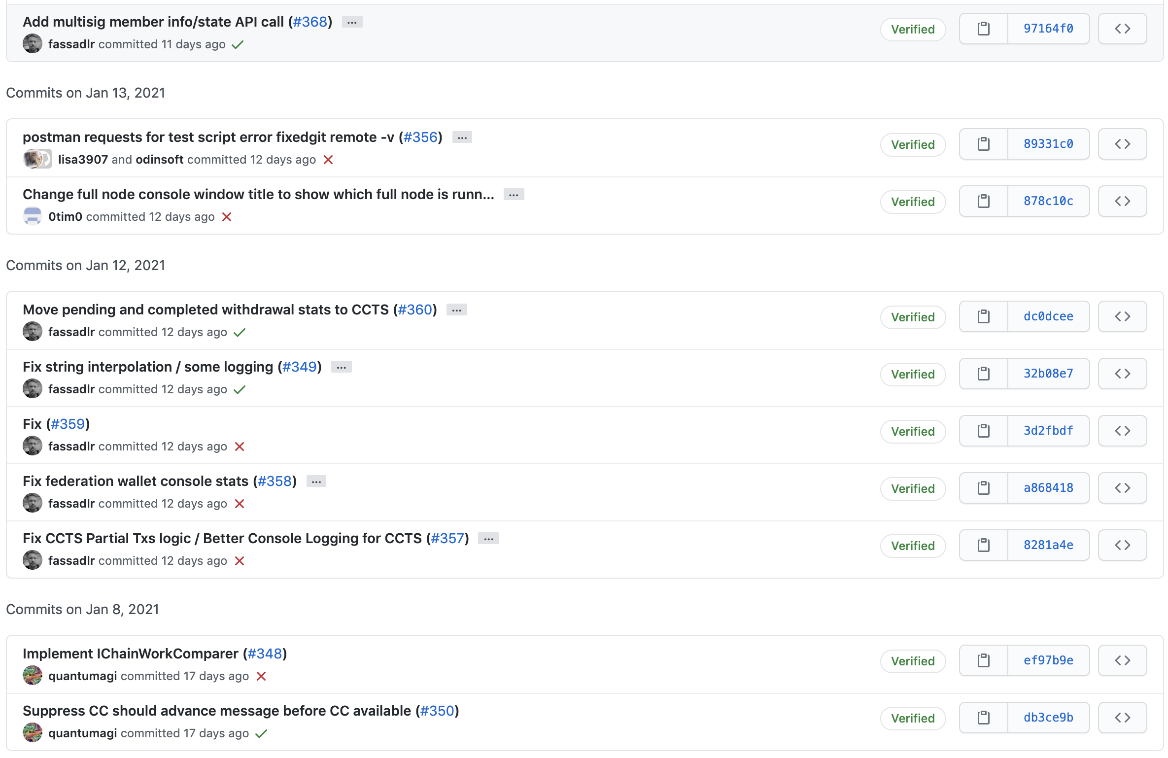 커밋 히스토리를 살펴보면 한달에 평균 2~3건의 커밋만 발생한 프로젝트라 제대로된 개발을 하고 있다는 것으로 느껴지진 않고, 유지보수 수준으로 운영되고 있는 프로젝트인 것 같습니다. (테스트넷 관련 저장소니까 뭐 그럴 수 있다고 생각합니다.. 그렇다 치더라고 해당 프로젝트는 2019년 6월 30일부터 시작되었는데...?!)