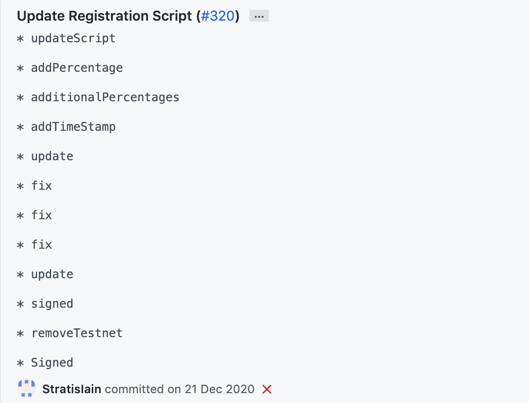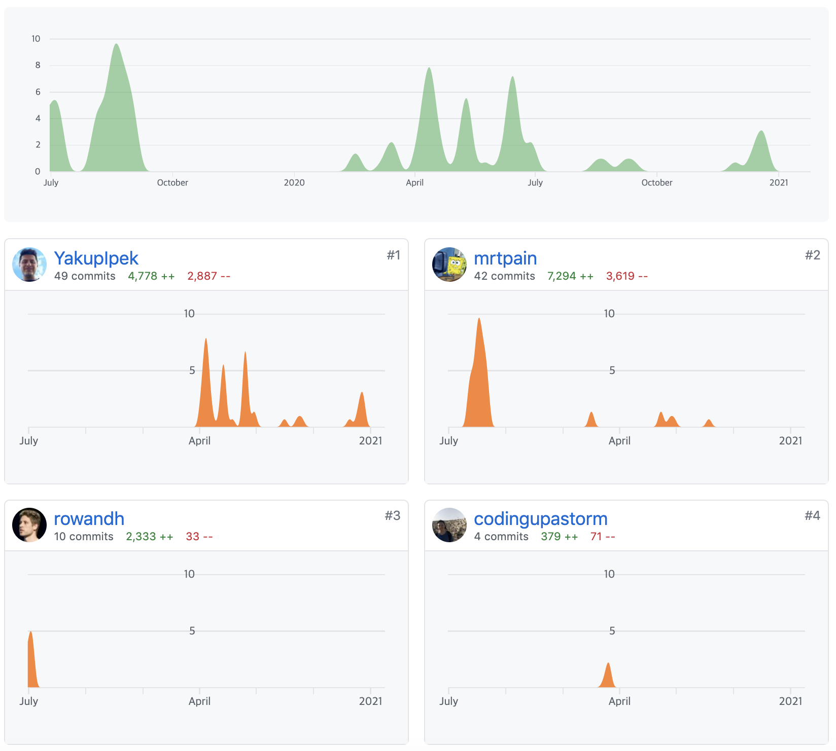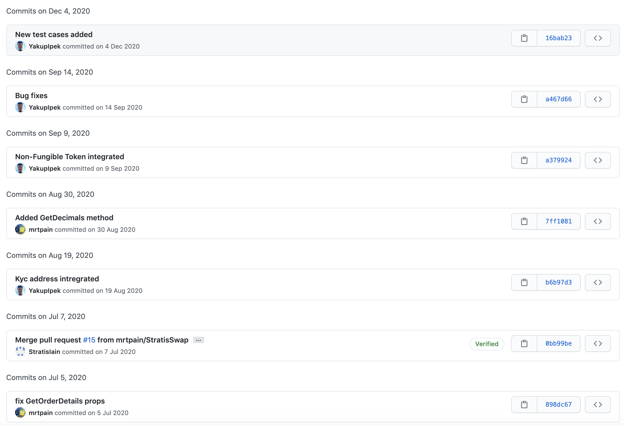 스트라티스 개발팀은 개발자들끼리 협업을 통해 개발을 진행하고 있을줄 알았지만 이 이후 2020년부터는 YakupIpek 개발자 한분이서 대부분의 개발을 진행하고 있는 것을 알 수 있었습니다.