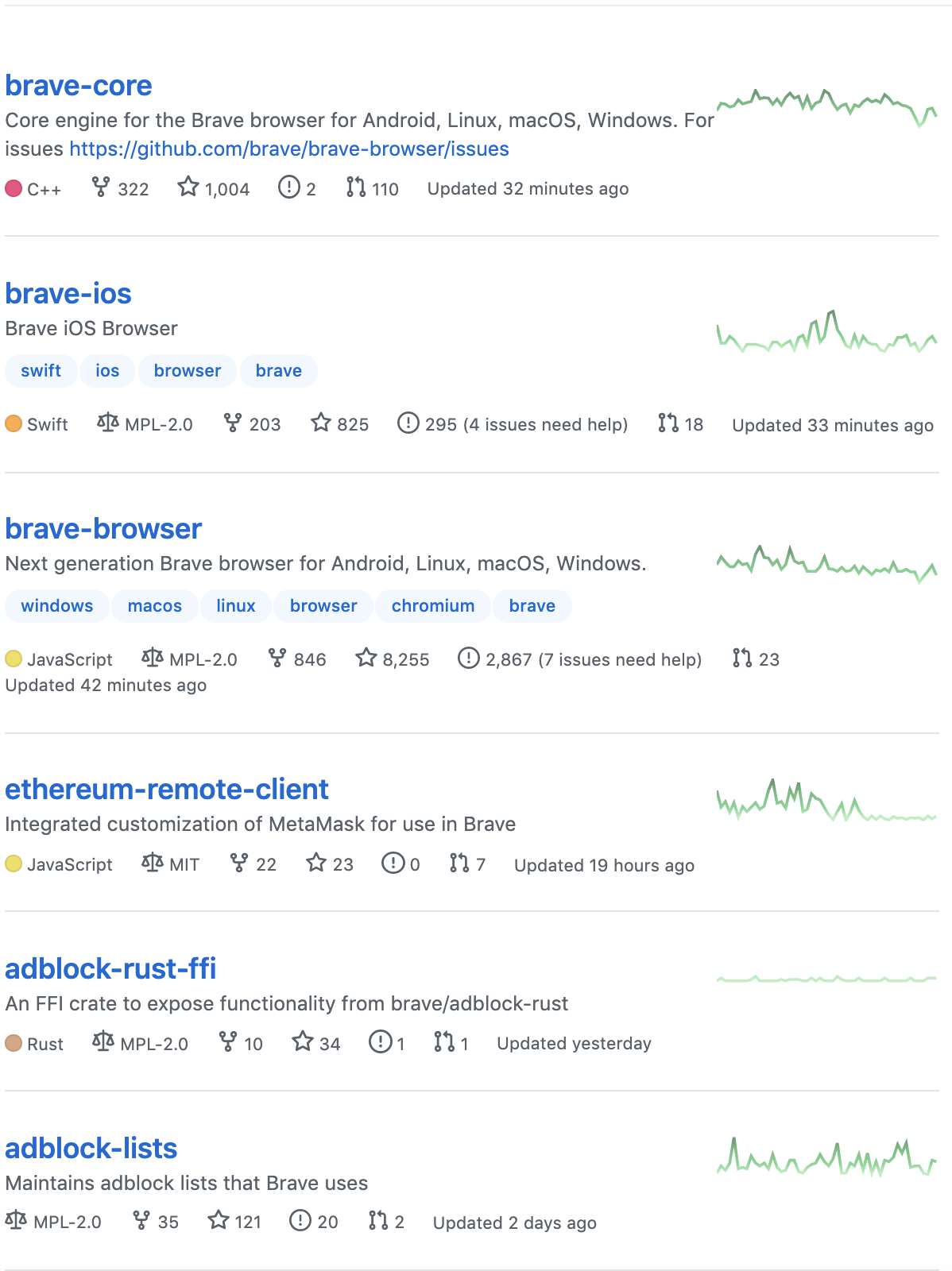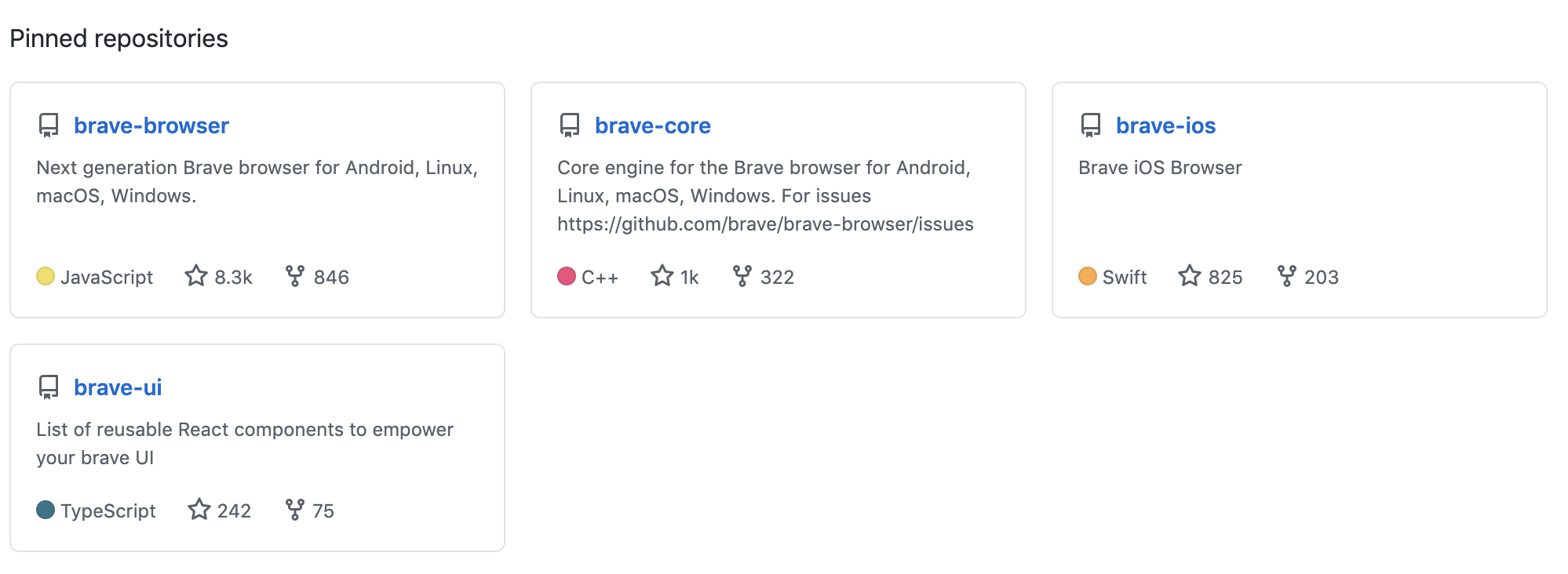 그렇다면 BAT 생태계인 브레이브 브라우저가 바로 개발의 핵심일 것으로 예상되는데 해당 프로젝트 또한 깃허브에 공개되어 있습니다.