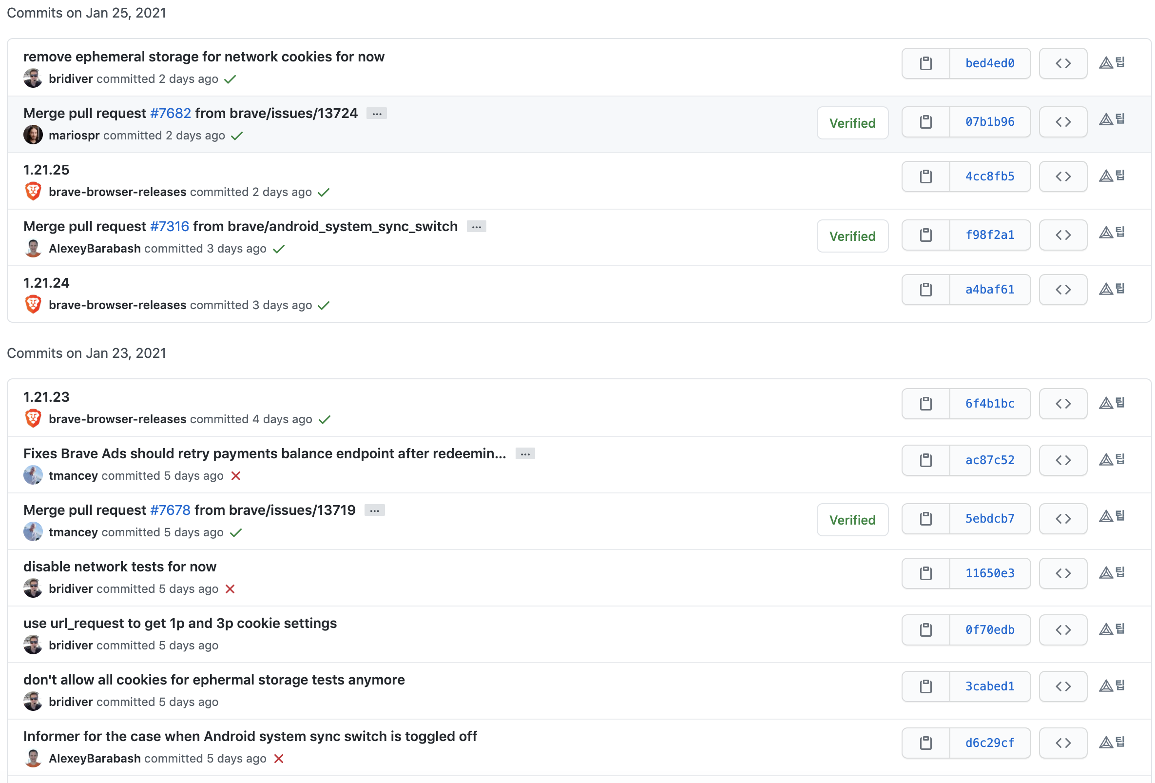 브레이브 개발팀의 최근 프로젝트 업데이트 현황을 살펴보면 정말 많은 프로젝트들이 현재 꾸준하게 업데이트되고 있는 것을 확인할 수 있습니다. 현재까지 다룬 코인관련 개발팀 중에 단언컨데 가장 개발을 열심히 진행하고 있다고 봐도 무방합니다. 제가 다룬 다른 코인 프로젝트들과 비교하면 굉장히 차이가 많이 나는 것을 알 수 있습니다. 투자자들 돈 받아먹고 제대로 개발하지도 않고 있는 회사는 정말 이런걸 보면 부끄러워해야 합니다.