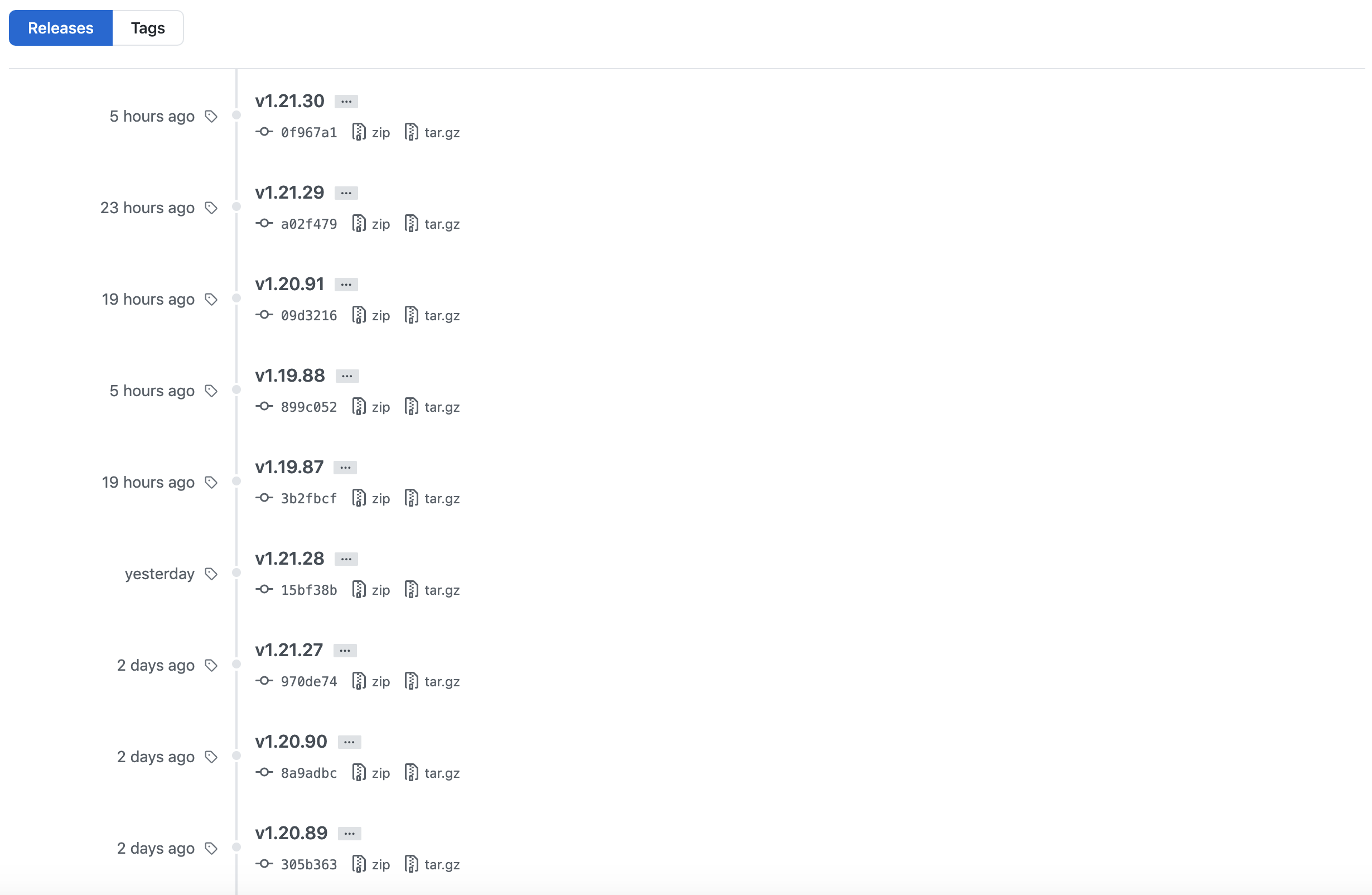 릴리즈(Release)란 유저들에게 특정 버전의 소프트웨어를 제공하는 단계입니다. 릴리즈의 내역에는 해당 릴리즈에서 반영된 내용과 소스코드가 포함되어 있습니다. 태그(Tag)란 일반적으로 우리가 이해하고 있는 것처럼 무언가 표시를 해두기 위한 기능입니다. 깃에서는 특정 커밋(Commit)을 태그하는 행위죠. 특정 커밋을 가리키는 참조라고 이해하시면 됩니다.