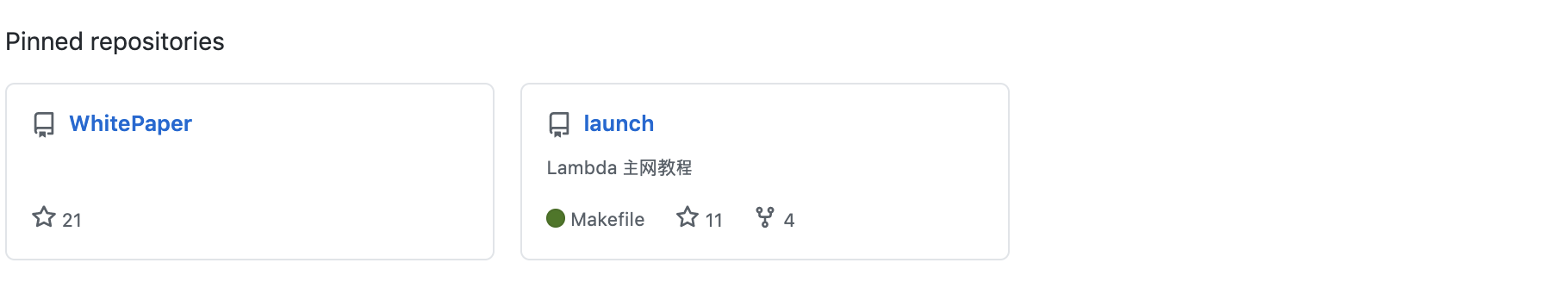 람다 깃허브 메인 프로젝트 목록은 아래와 같습니다. 람다 개발팀에서는 백서와 람다 launch 저장소를 메인 프로젝트로 지정한 것을 확인할 수 있습니다.