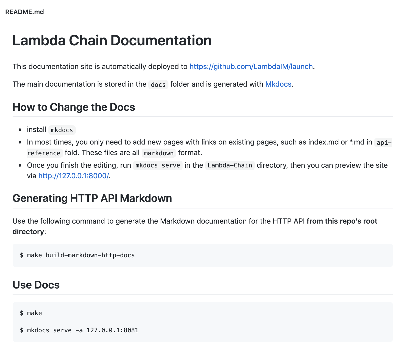 람다 launch 프로젝트는 개발관련 프로젝트가 아니라 람다 체인 문서와 관련된 저장소네요.