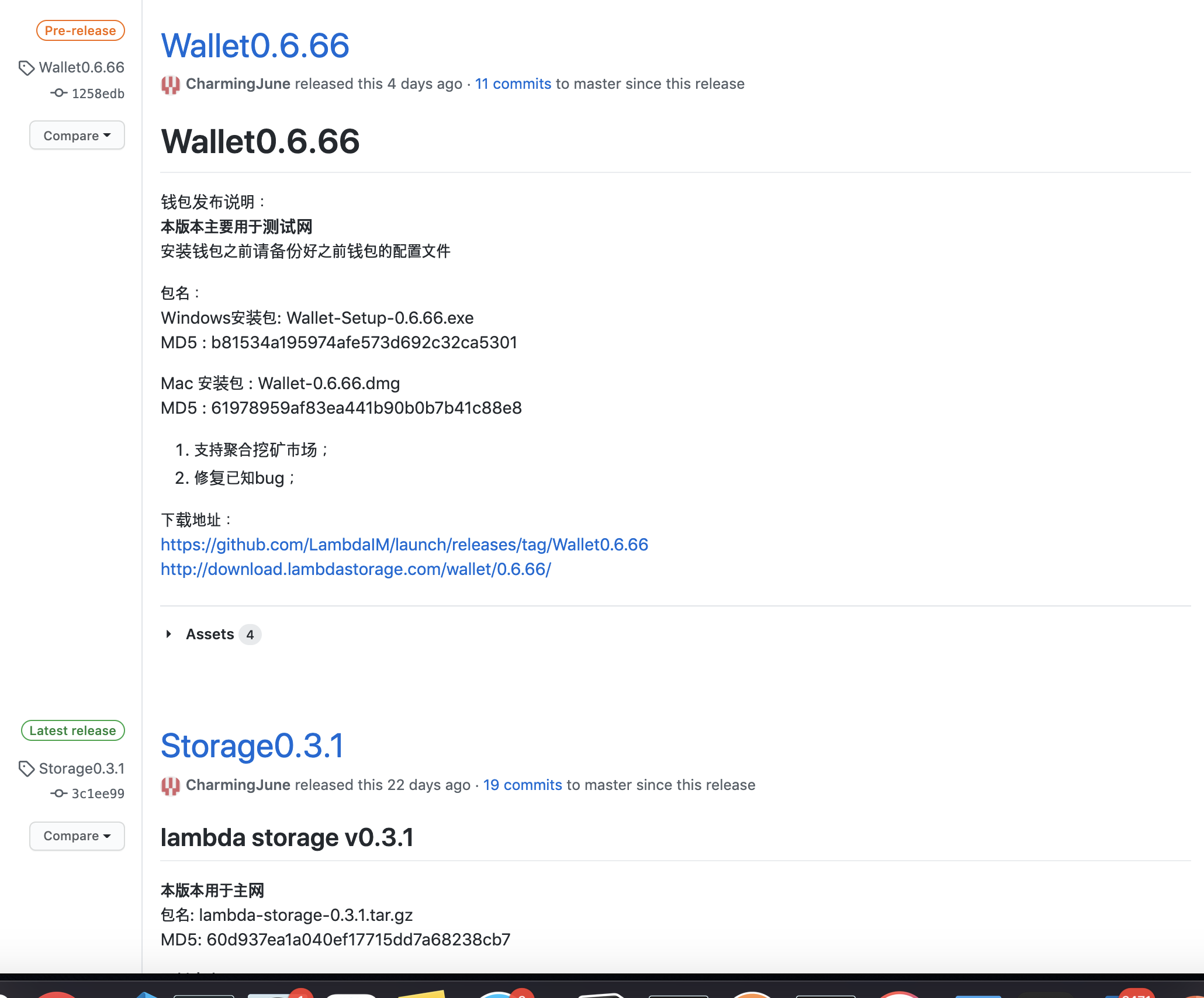 람다스토리지 프로젝트, 지갑 프로젝트 등 다운로드 경로를 제공하고 있는 것을 확인할 수 있습니다.