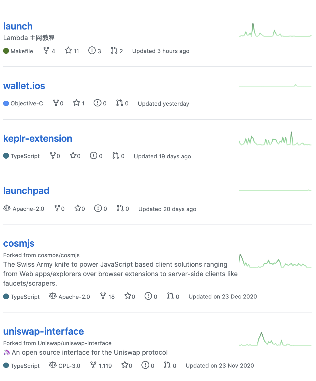람다 코인에 투자를 하시려는 투자자분들은 오늘 포스팅을 어떻게 보셨나요? 저는 해당 코인 개발팀 측에서 공개한 프로젝트를 통해 개발 현황에 대해서 살펴볼 때 커밋, 이슈, PR 등 다양한 지표로 판단하고 있는데 람다 코인은 깃허브 오픈소스를 공개하지 않은 것을 확인할 수 있었습니다. launch 프로젝트는 비공개 저장소에서 개발된 결과물에 대한 보고용으로 작성되는 저장소로 보이구요. 투자자 입장에서 개발 현황에 대해서는 launch 프로젝트에 공유된 릴리즈 노트밖에 볼게 없다는 겁니다. (투자자 입장에서 얻을 수 있는 정보가 제한적이긴 합니다)