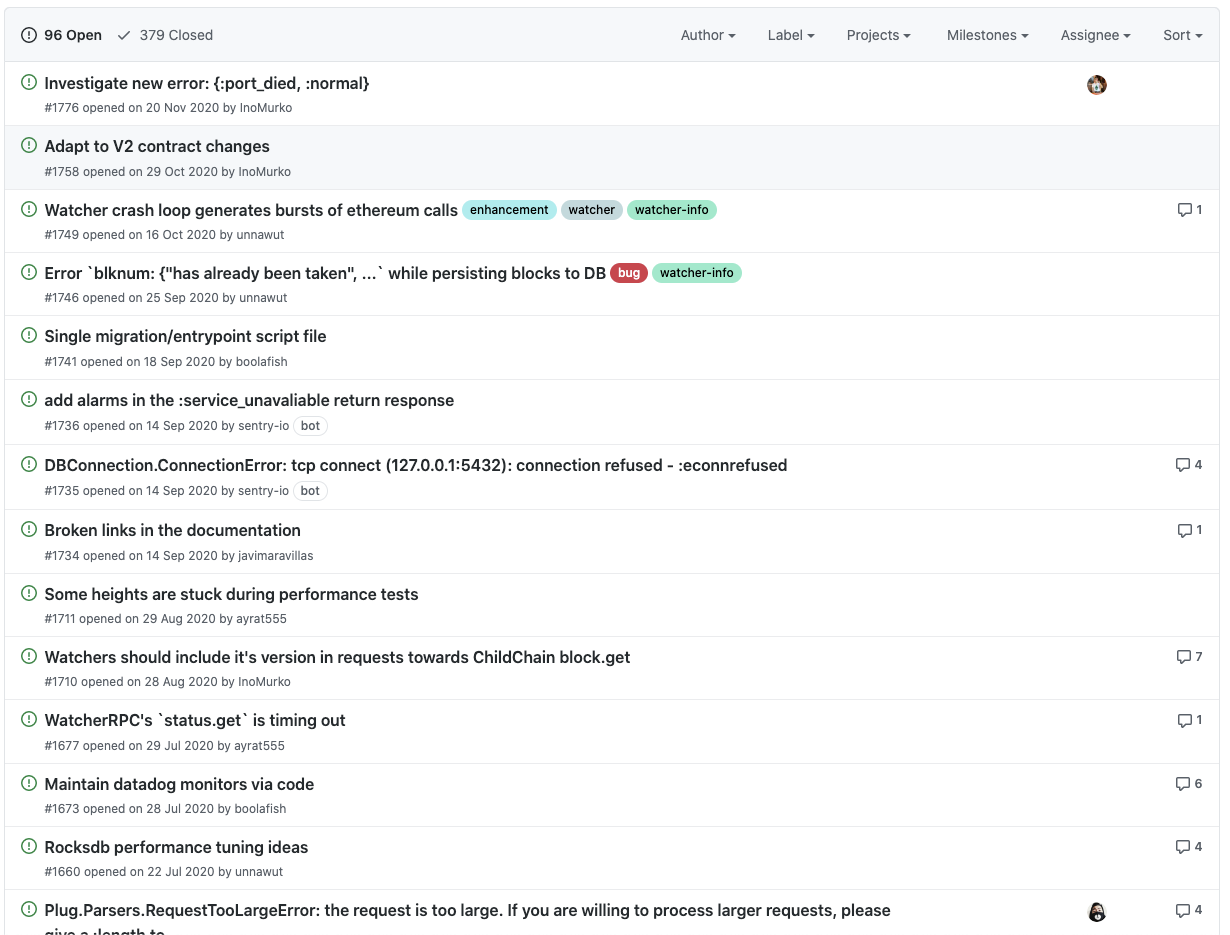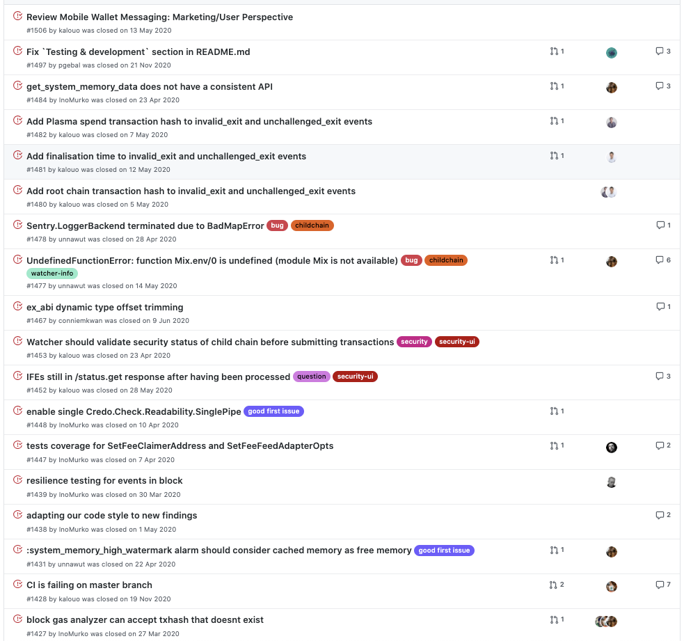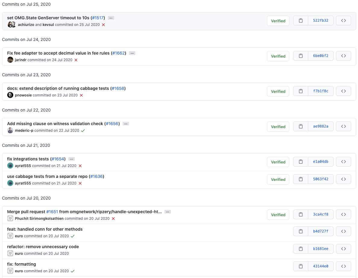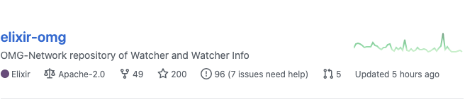 현재 가장 업데이트가 잘 진행되고 있는 elixir-omg 저장소를 통해 오미세고 개발팀의 개발 현황에 대해서 한번 살펴보도록 하겠습니다.