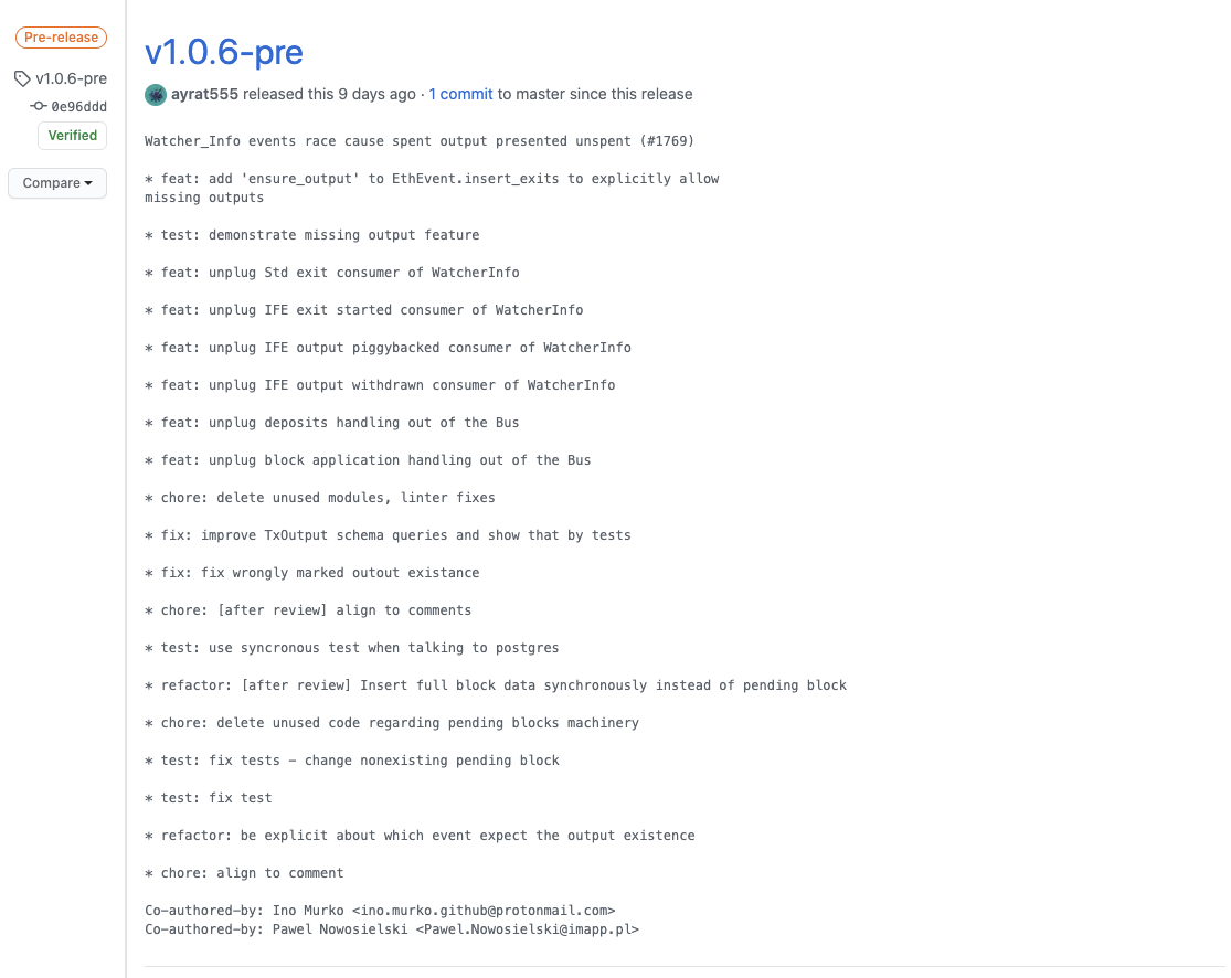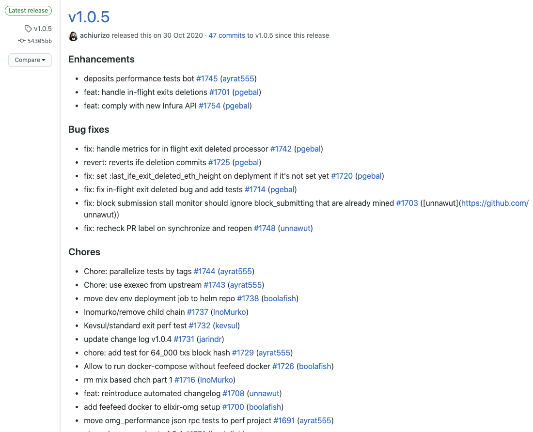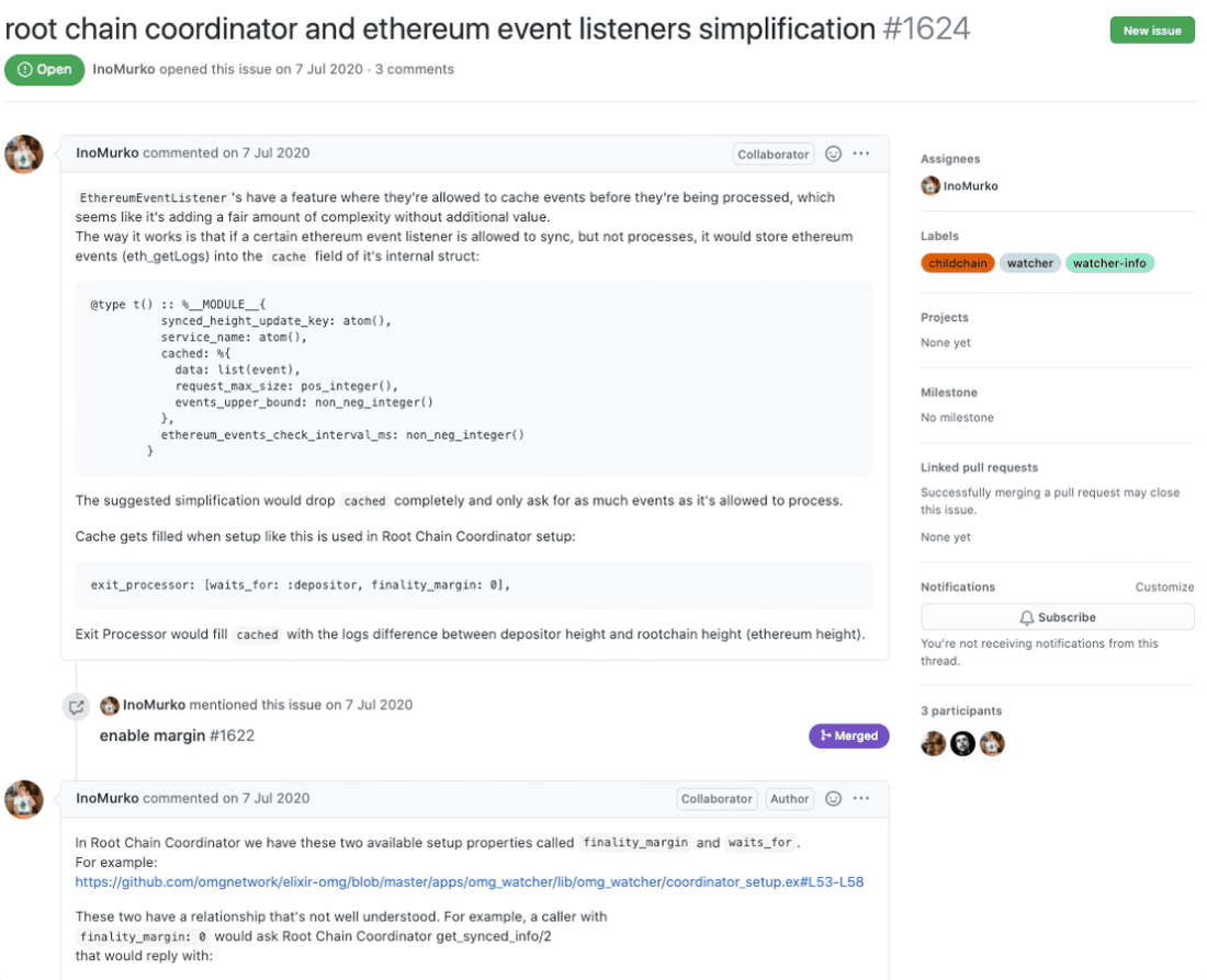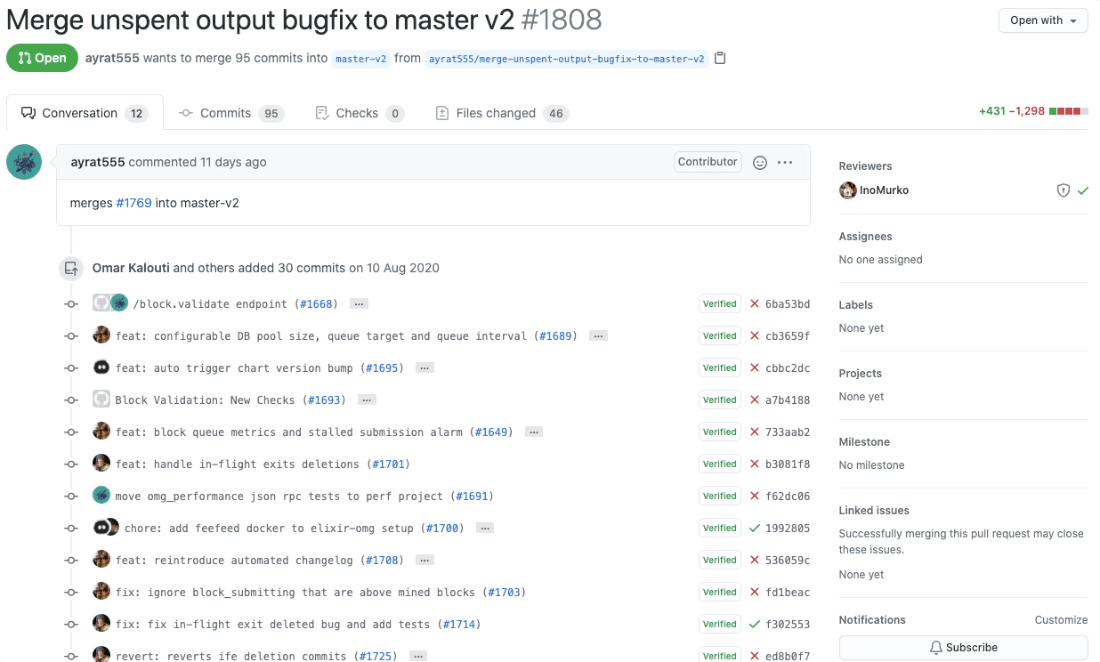 현재 가장 업데이트가 잘 진행되고 있는 elixir-omg 저장소를 통해 오미세고 개발팀의 개발 현황에 대해서 한번 살펴보도록 하겠습니다.