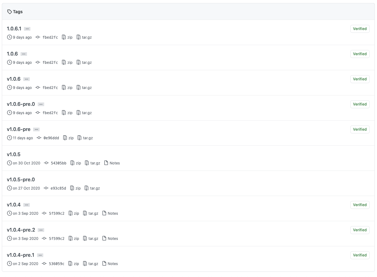 릴리즈(Release)란 유저들에게 특정 버전의 소프트웨어를 제공하는 단계입니다. 릴리즈의 내역에는 해당 릴리즈에서 반영된 내용과 소스코드가 포함되어 있습니다. 태그(Tag)란 일반적으로 우리가 이해하고 있는 것처럼 무언가 표시를 해두기 위한 기능입니다. 깃에서는 특정 커밋(Commit)을 태그하는 행위죠. 특정 커밋을 가리키는 참조라고 이해하시면 됩니다.