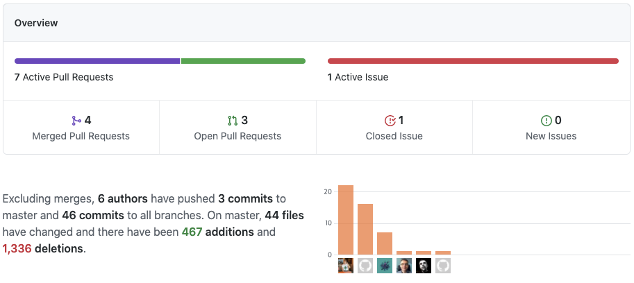 최근 한달동안 프로젝트에서 업데이트된 내용들과 전체 기간동안 프로젝트에 참여한 참여자들을 확인할 수 있습니다.