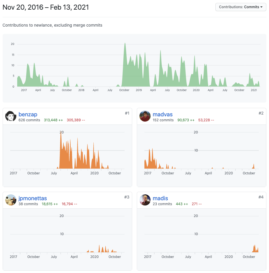 최근 커밋 히스토리 내역을 살펴보면 업데이트가 활발히 이뤄지진 않았습니다.