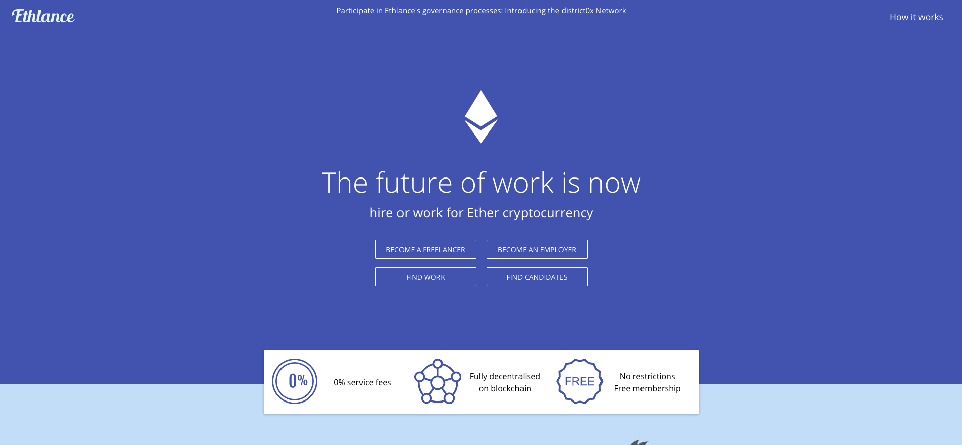 Ethlance is the first job market platform built on the Ethereum blockchain. Free to use forever!