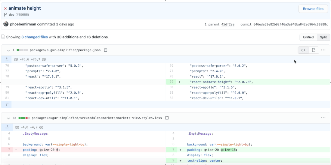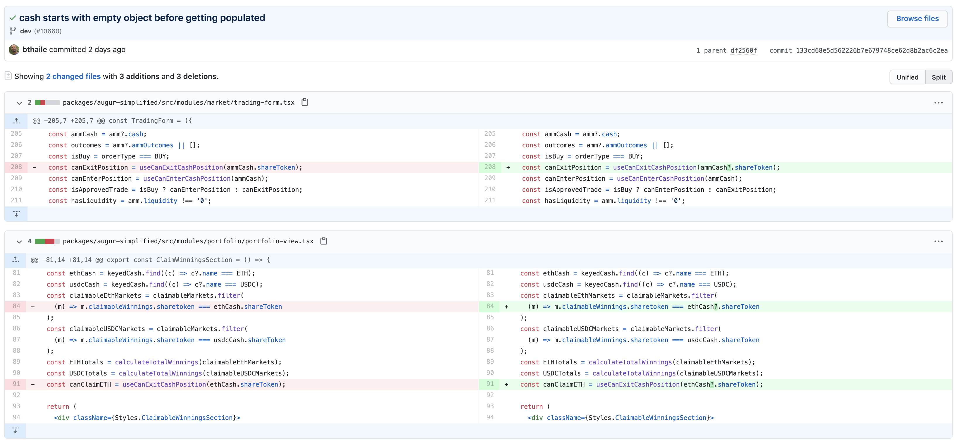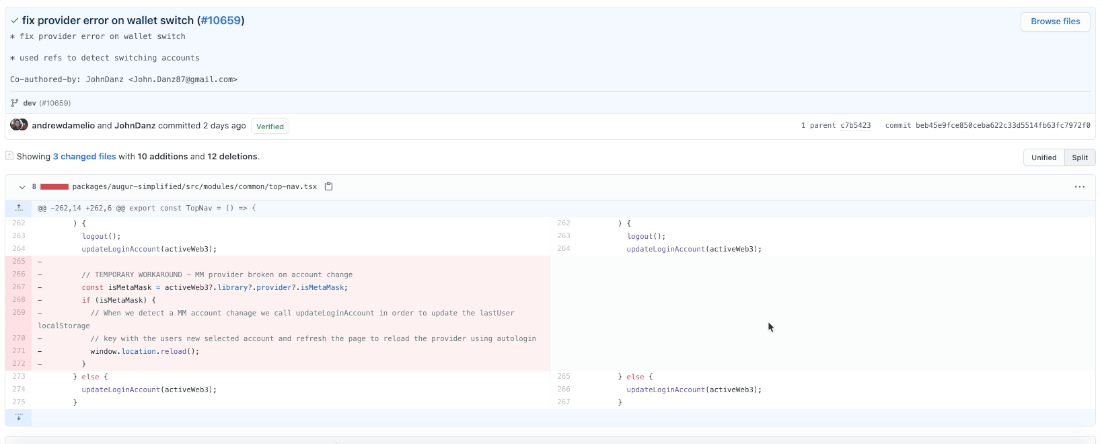 커밋 메시지 실제 수정된 코드 내역을 살펴보면 어거 개발팀은 굉장히 적은 단위의 수정사항들도 커밋 하나 하나 모두 쪼개서 하고 있는 것을 확인할 수 있습니다. 수정된 코드들을 살펴보면 코인 관련 로직이 아닌 프론트엔드 리액트 라이브러리 코드 수정사항들을 확인할 수 있습니다.