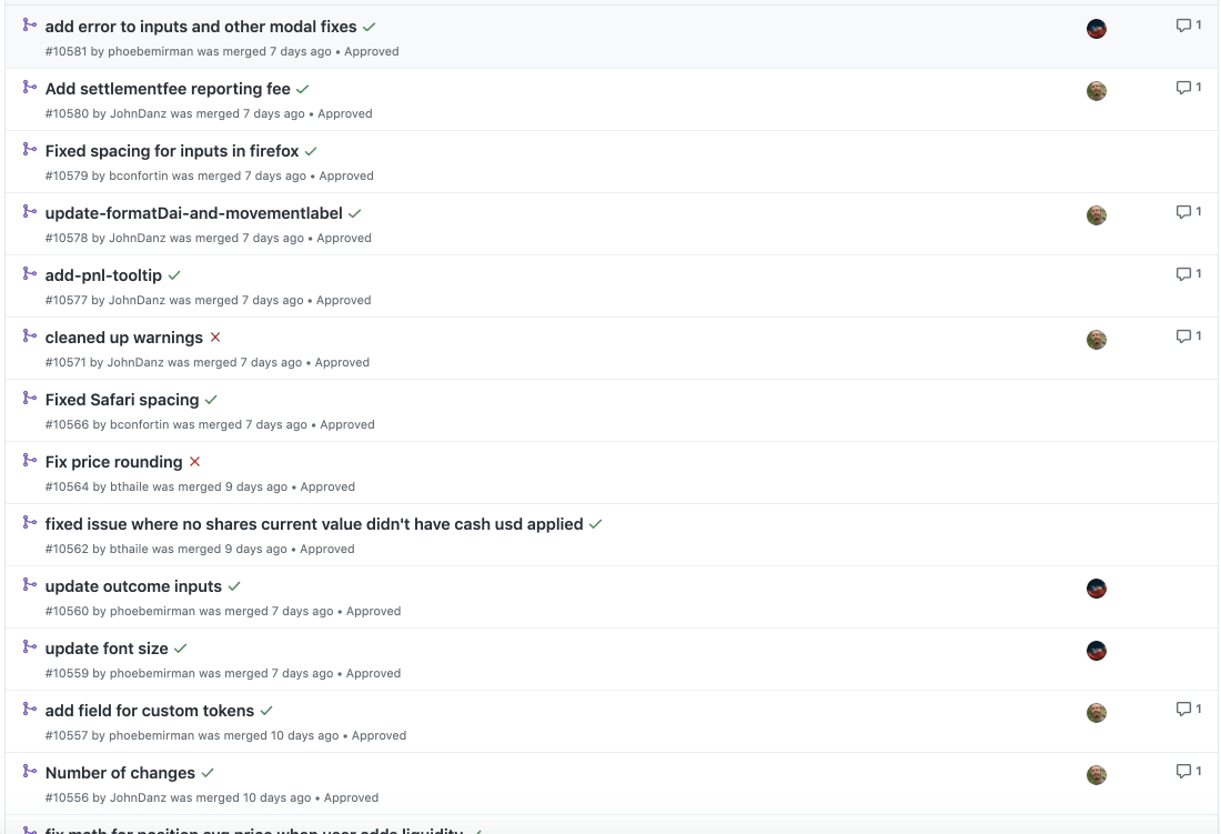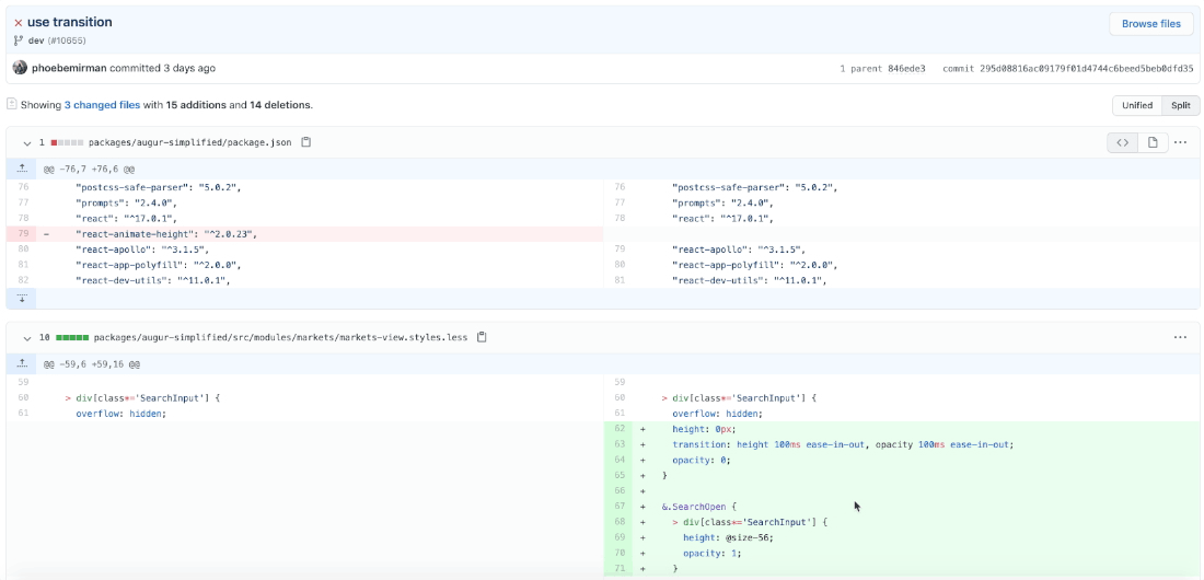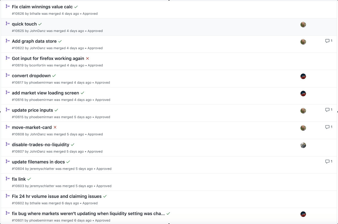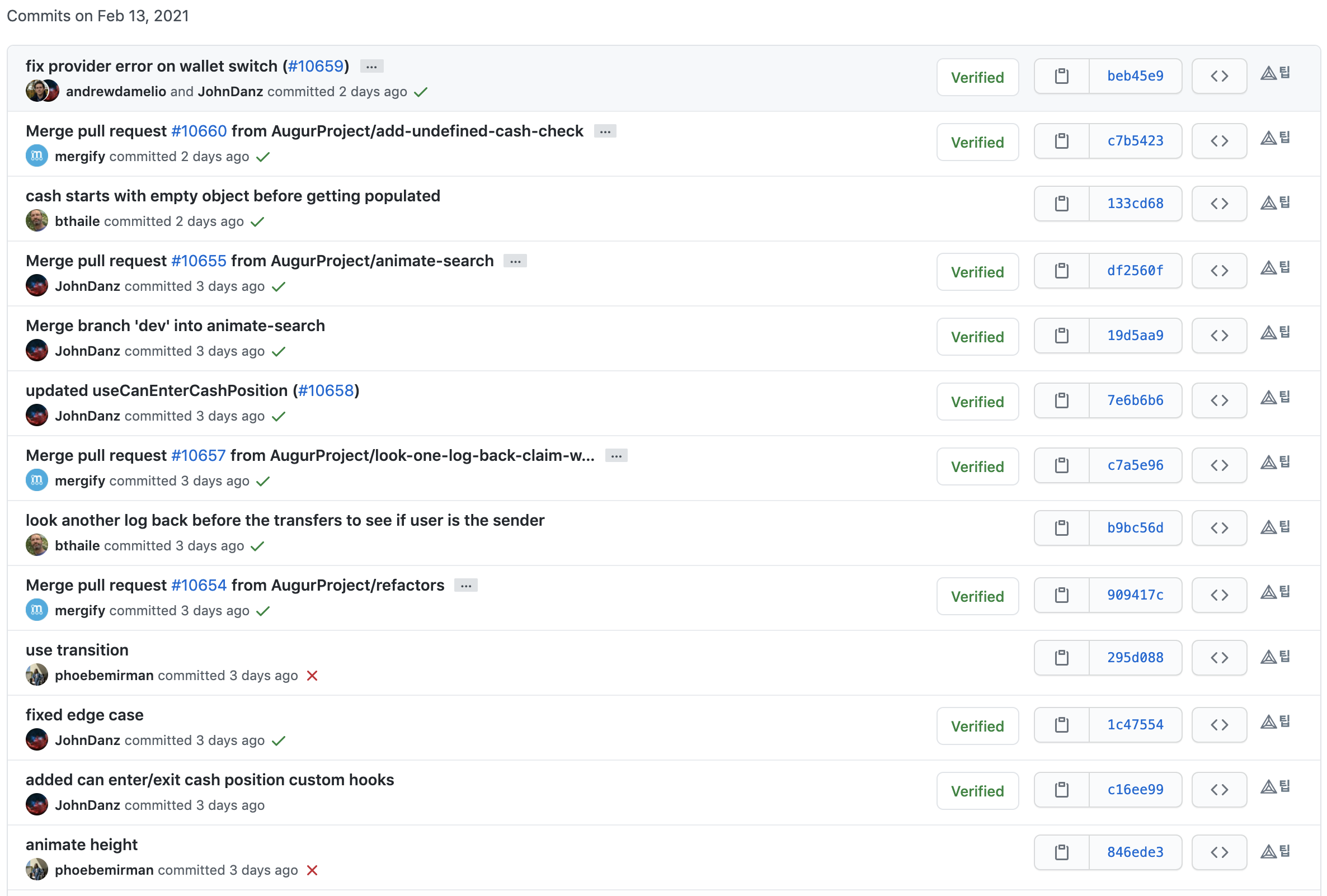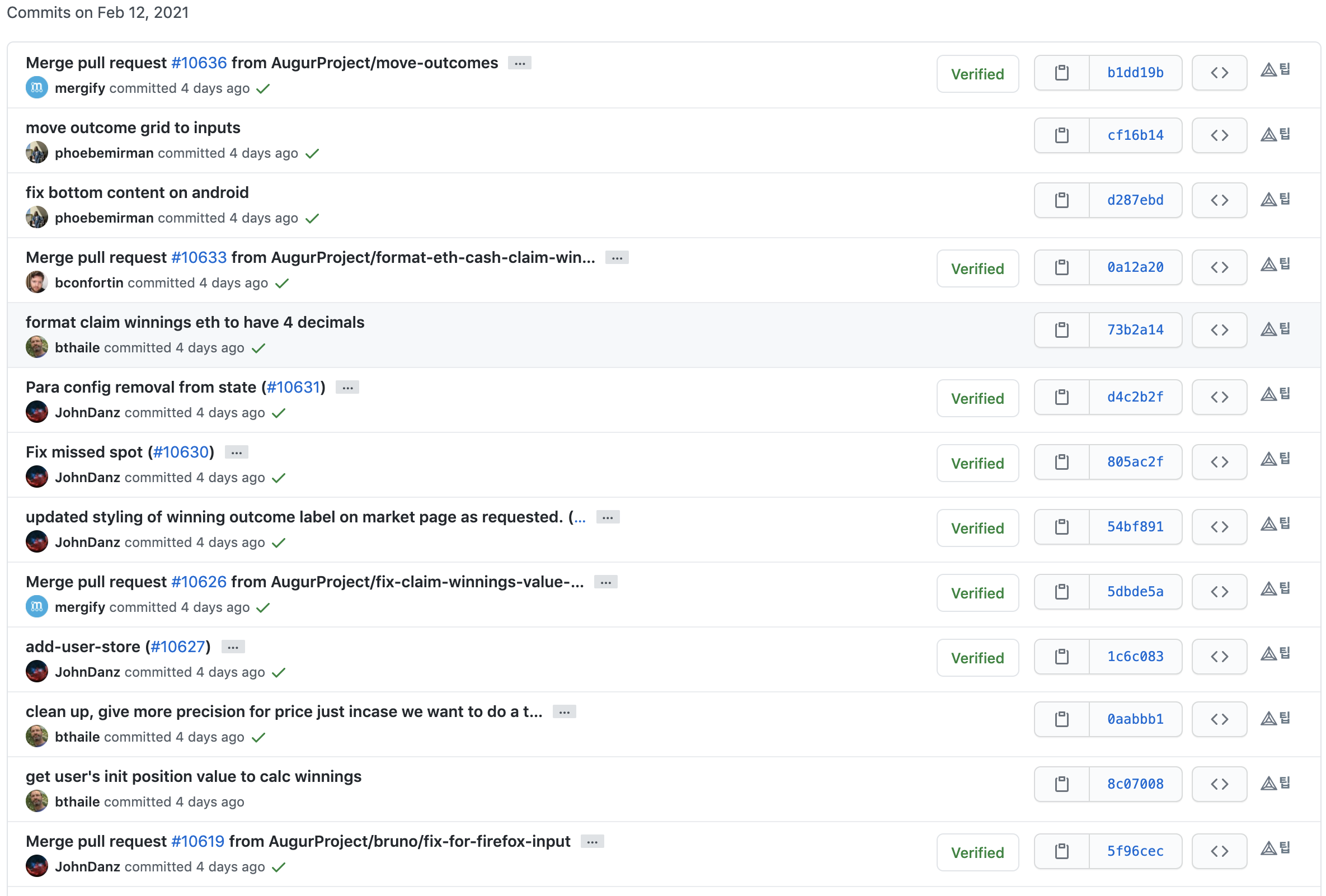 커밋수가 굉장히 많은 이유가 이렇게 조그마한 수정사항들을 모두 커밋을 쪼개서 작성했기 때문에 그랬던 것 같습니다. 최근 수정사항들이 프론트엔드 리액트 라이브러리 컴포넌트의 스타일들이 대부분이라 코인 관련 코드 개선이라고는 보기 어렵습니다. (프로젝트 설명에 Prediction Market Protocol and Client를 다시 읽어보니 이해가 됩니다. Client가 클라이언트 사이드 프로젝트라는 뜻으로 이해하면 되군요.)