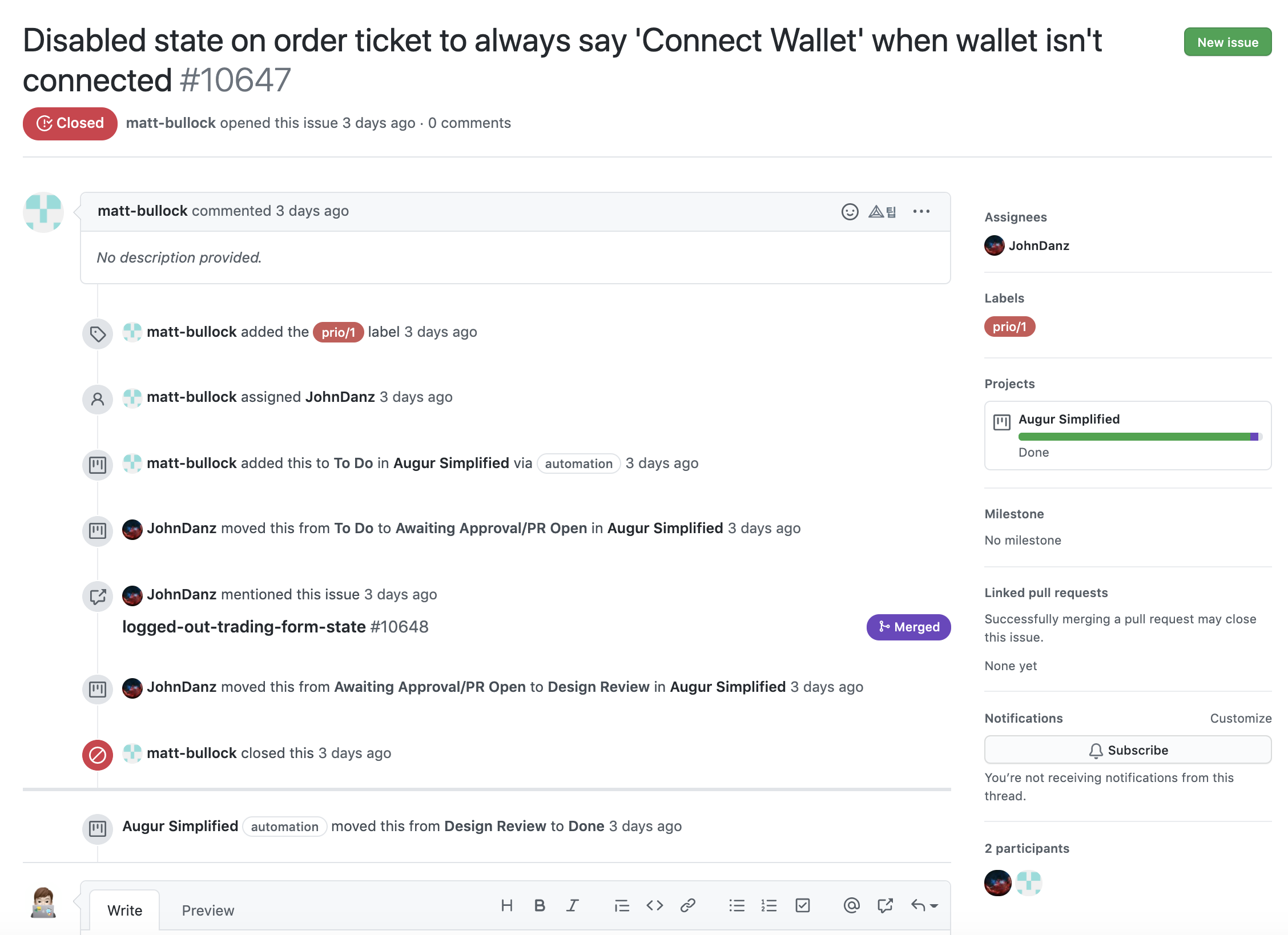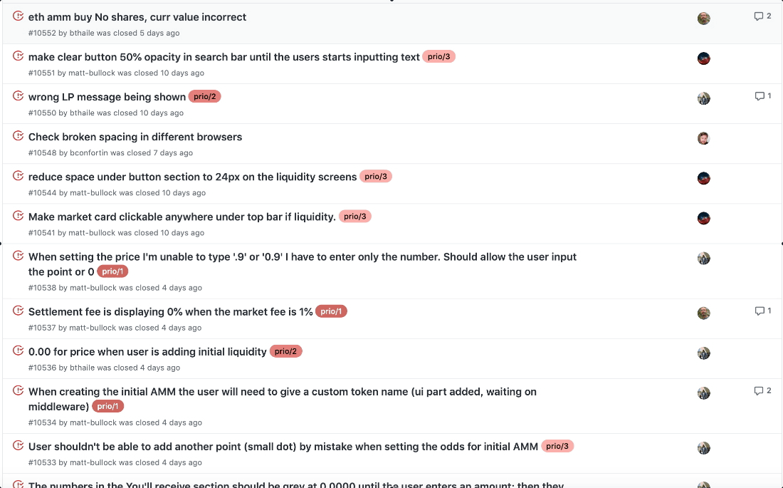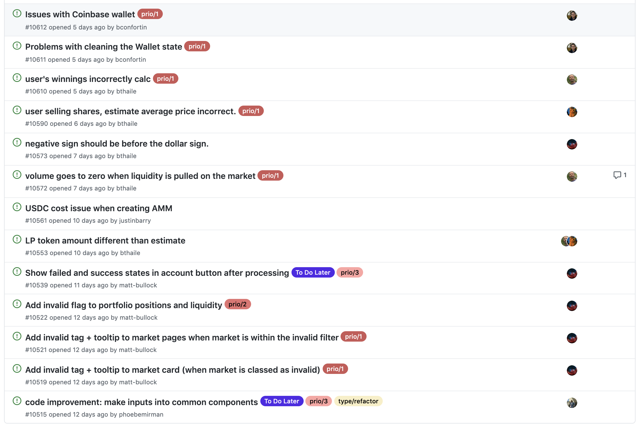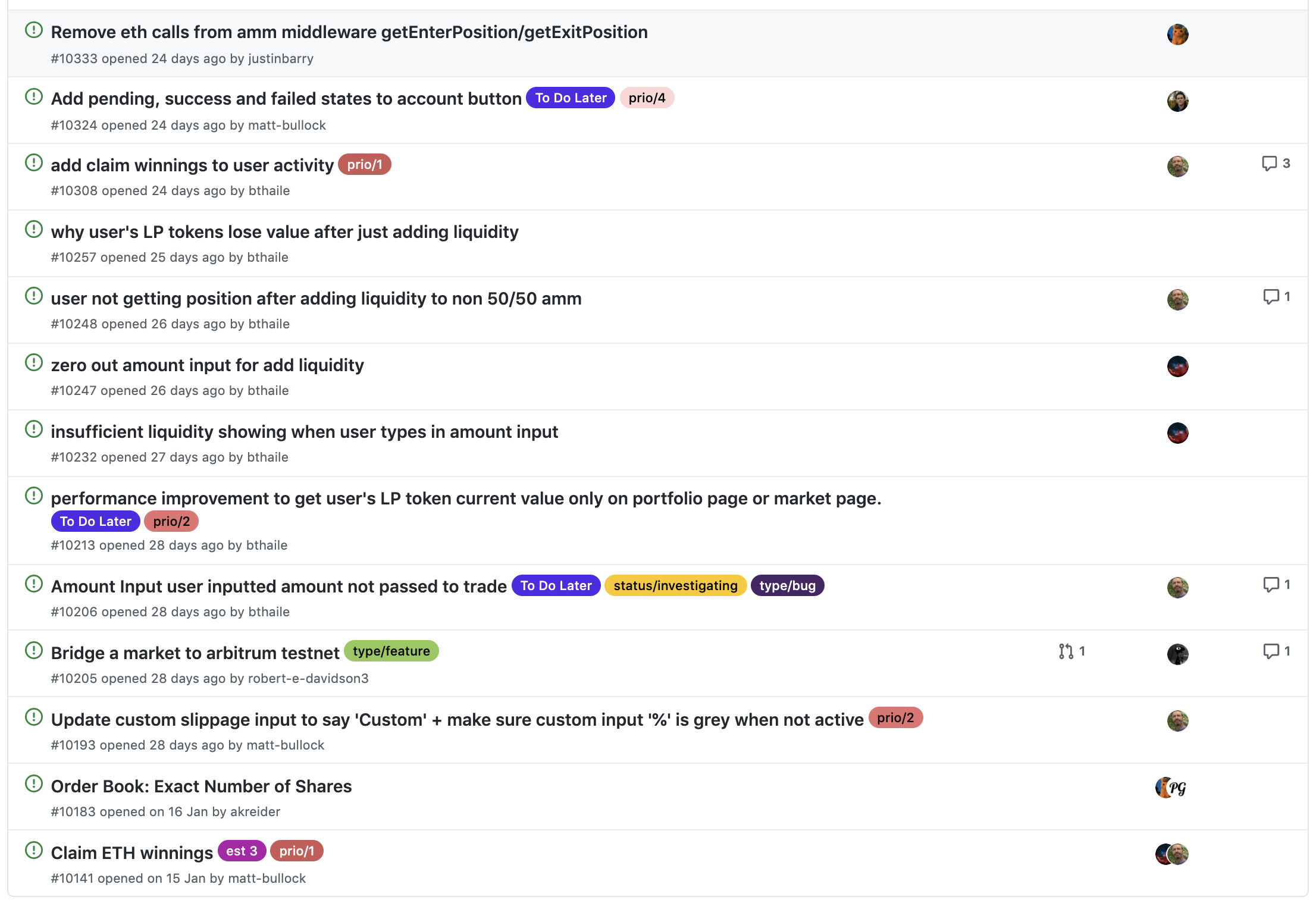 프로젝트에서 가장 중요한 부분은 개인적으로 버그나 개선사항이 생겼을 때 이슈를 작성하고 관리하는 것이라고 생각합니다. 이슈를 활용해서 프로젝트에서 발생되는 모든 문제들을 관리할 수 있습니다. 프로젝트에서 이슈들까지 제대로 관리하고 있다면 해당 코인을 개발하는 개발진들의 개발 참여도는 굉장히 긍정적으로 보인다고 말씀드리고 싶습니다.