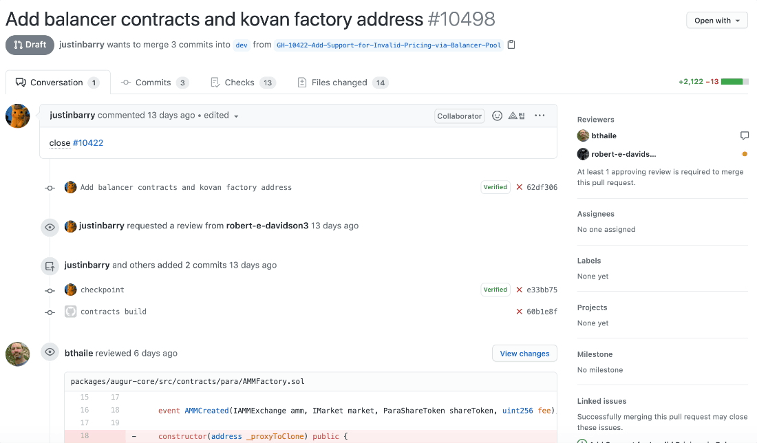 해당 PR을 승인하기 전에 리뷰어들이 같이 코드 리뷰를 하는 것이 기본적인 룰이지만 이런 모습은 해당 프로젝트에서 확인할 수 없습니다.
