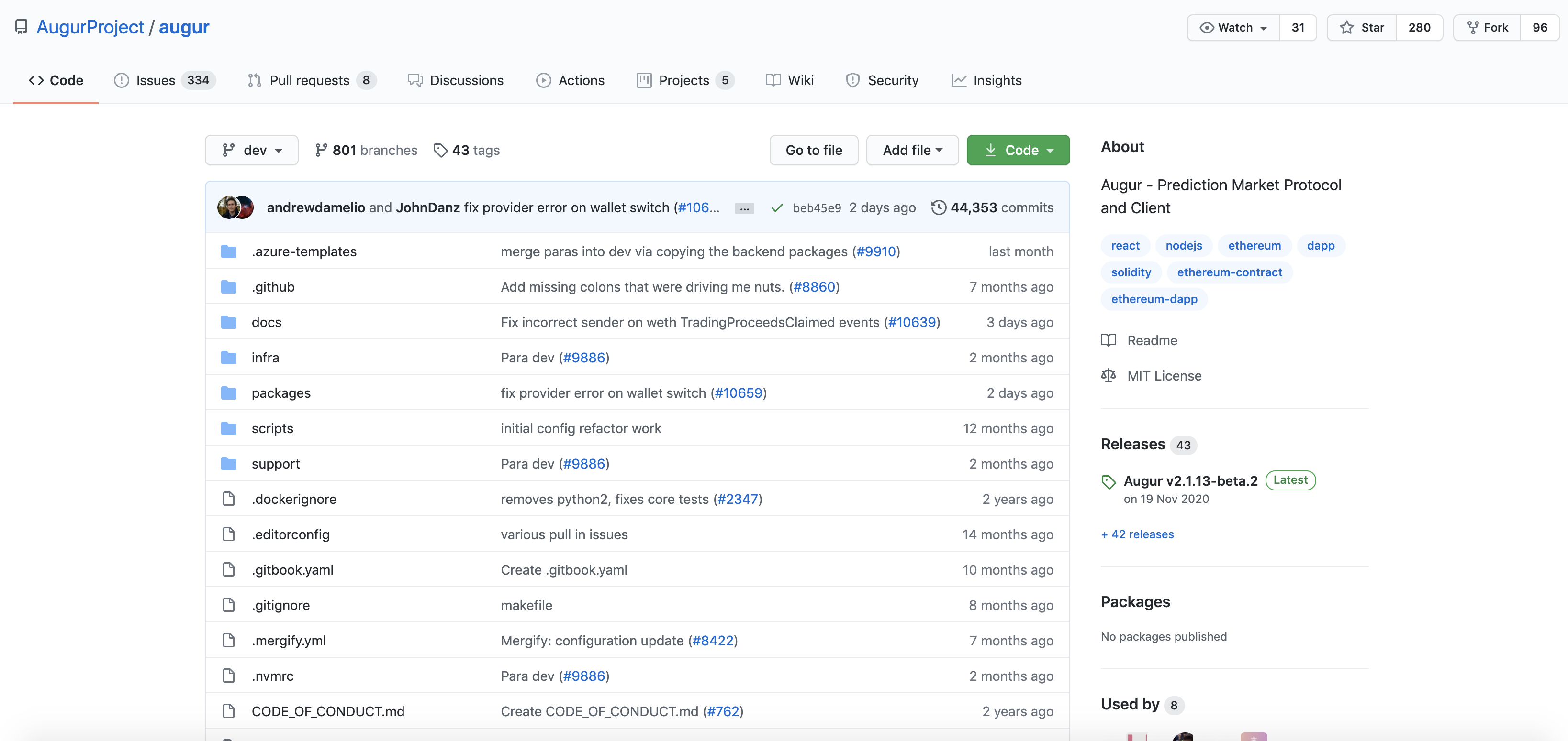 Augur: Your global, no-limit betting platform. Augur Project has 47 repositories available. Follow their code on GitHub.