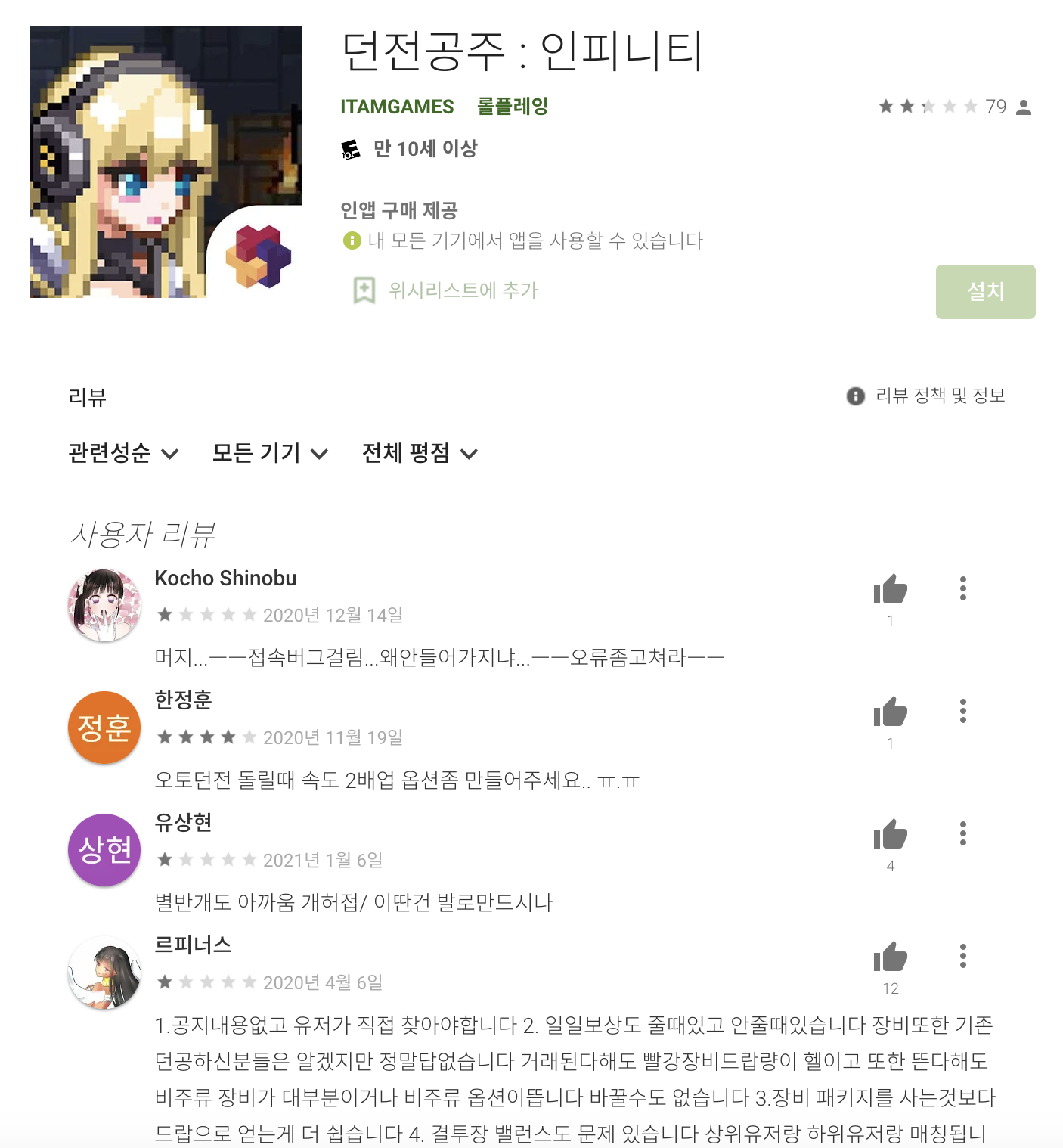 던전공주: 인피니티라는 게임에서 사용할 수 있는 아이템들을 판매하고 있는 것을 알 수 있습니다.