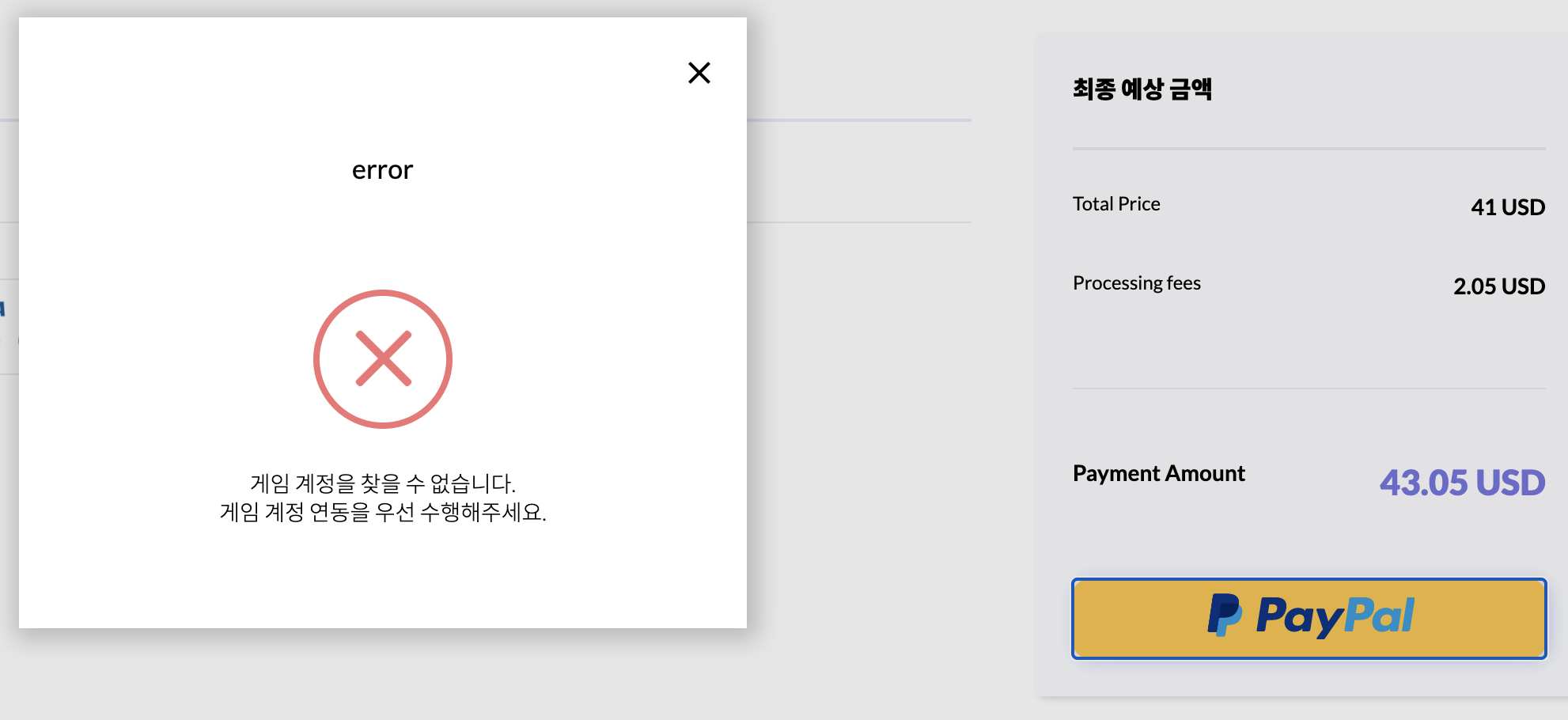 인증을 모두 진행했으나 게임 연동을 할 수 없어서 아이템 구매 절차를 테스트해보지 못했습니다.