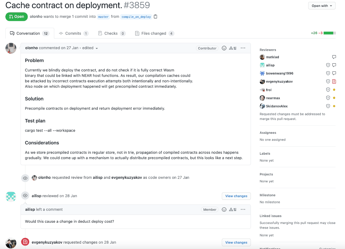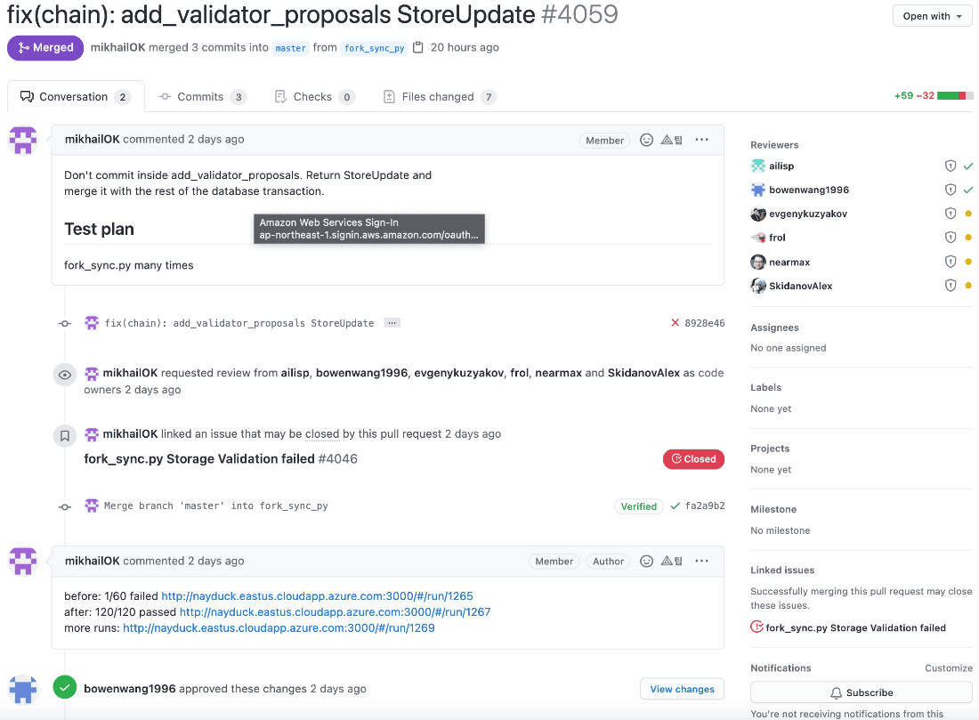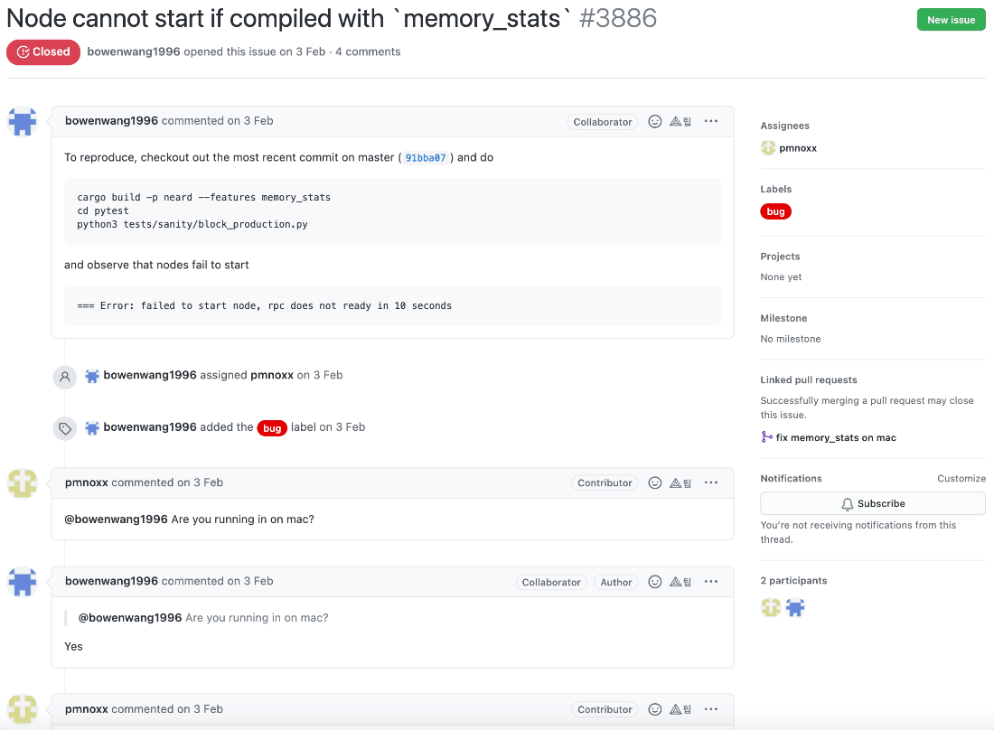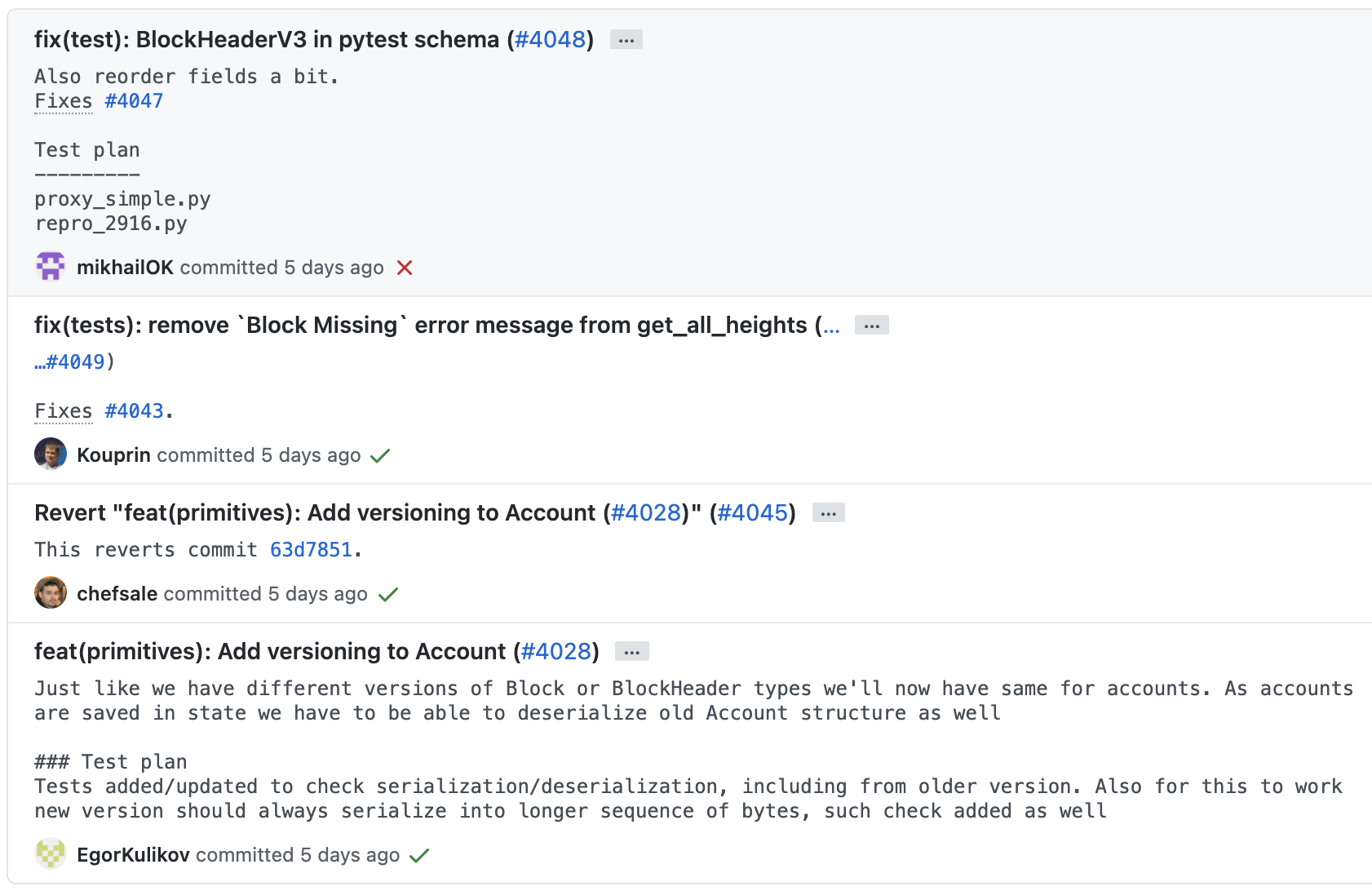 커밋 메시지 히스토리를 살펴보면 니어 프로토콜 개발팀은 내부 커밋 메시지 컨벤션이 존재하는 것 같습니다. 메시지를 굉장히 명시적으로 잘 작성했고, 팀원들끼리 컨벤션에 맞춰 굉장히 깔끔하게 잘 작성해주고 있는 것을 확인할 수 있습니다. (제가 개인적으로 굉장히 좋아하는 메시지 컨벤션입니다!)