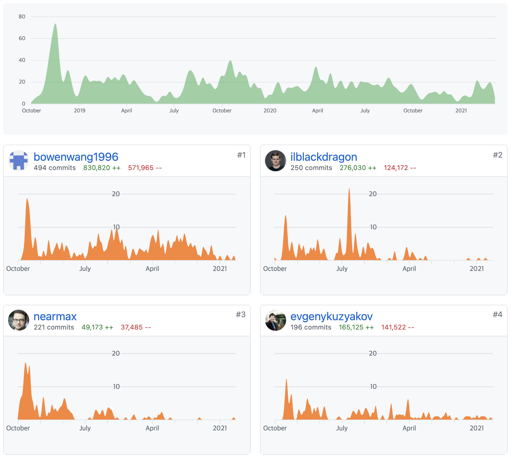 니어 프로토콜 개발팀 깃허브 프로젝트 최근 업데이트 현황을 살펴보면 꽤 업데이트가 잘 진행되고 있다는 느낌이 듭니다. 저장소 우측 최근 업데이트 관련 그래프를 살펴보면 꽤 활발하게 움직이는 것을 알 수 있습니다.