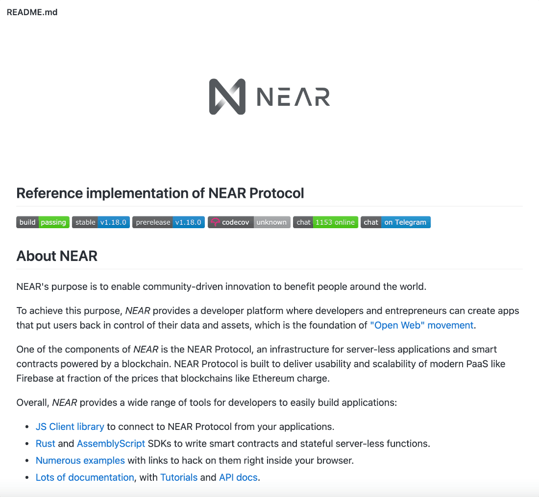 니어 프로토콜 핵심프로젝트인 nearcore 저장소를 통해 니어 프로토콜 개발팀 개발 현황에 대해서 살펴보도록 하겠습니다.