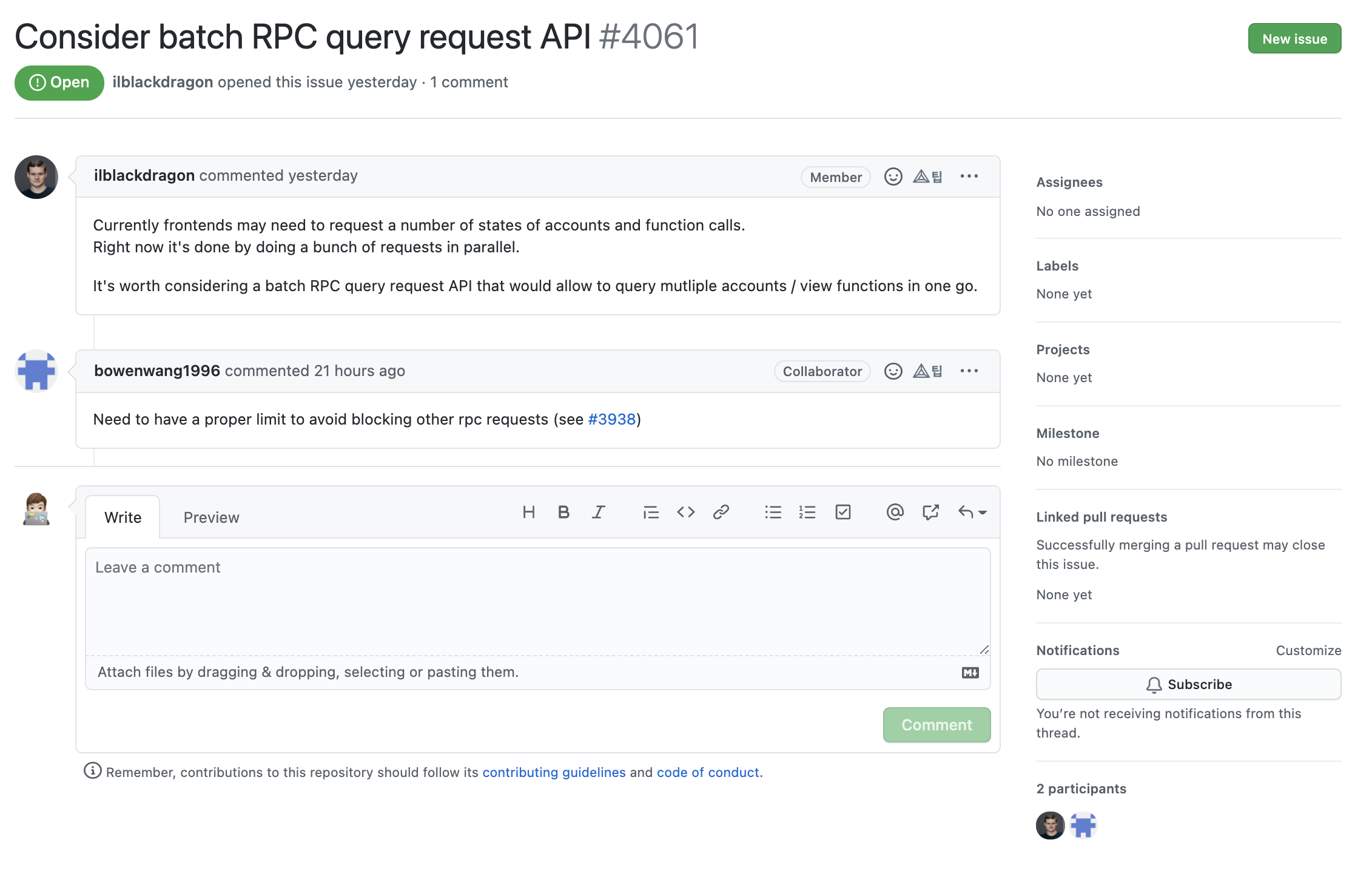 프로젝트에서 가장 중요한 부분은 개인적으로 버그나 개선사항이 생겼을 때 이슈를 작성하고 관리하는 것이라고 생각합니다. 이슈를 활용해서 프로젝트에서 발생되는 모든 문제들을 관리할 수 있습니다. 프로젝트에서 이슈들까지 제대로 관리하고 있다면 해당 코인을 개발하는 개발진들의 개발 참여도는 굉장히 긍정적으로 보인다고 말씀드리고 싶습니다.