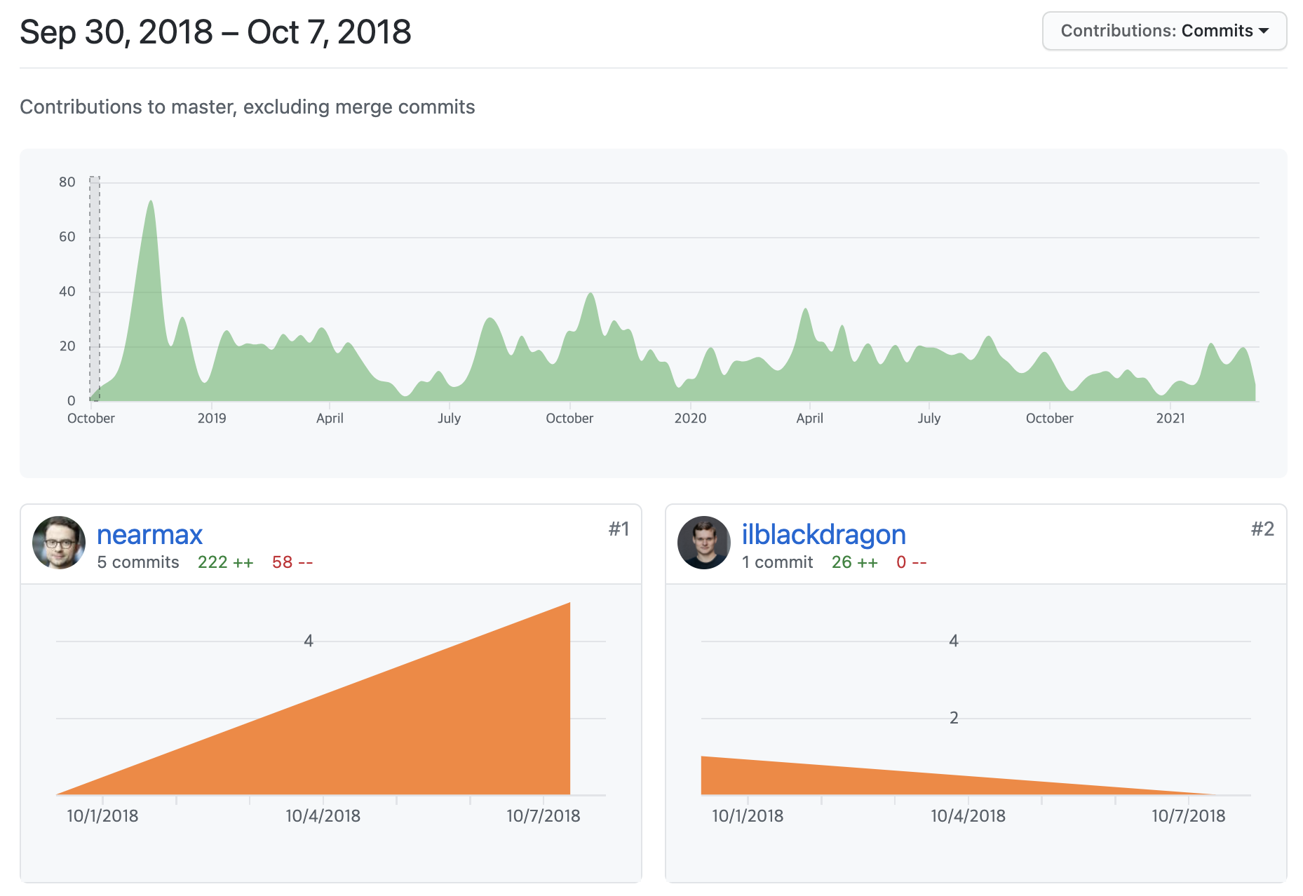 니어 프로토콜 개발팀이 실제 초기부터 개발을 진행했는지 프로젝트 초기 커밋 기록들을 살펴봅니다. 해당 프로젝트는 2018년 9월 30일에 생성되었습니다.