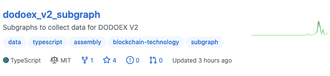 도도코인 핵심프로젝트인 contractV2, dodoex_v2_subgraph 저장소를 통해 도도코인 개발팀 개발 현황에 대해서 살펴보도록 하겠습니다. 좀 더 업데이트가 활발한 contractV2 저장소를 집중적으로 알아보기 전에 dodoex_v2_subgraph 저장소를 간략히 살펴보도록 하겠습니다.
