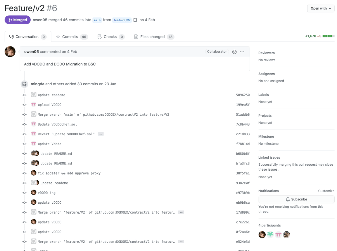 도도코인(DODO) 개발 현황을 한번 살펴보도록 하겠습니다. 도도코인 깃허브 프로젝트는 아래 링크에서 확인할 수 있습니다.