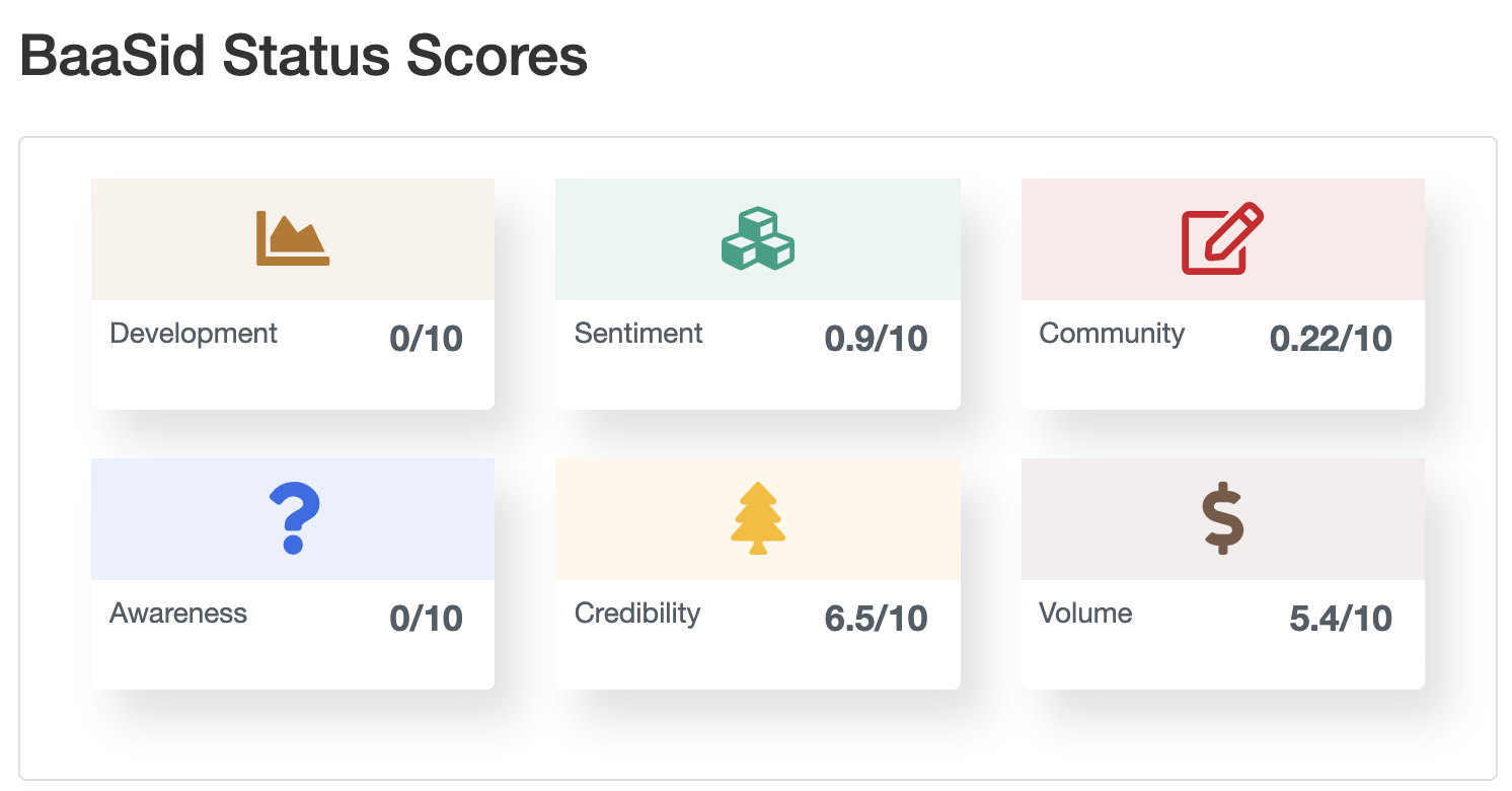 아래 스캠 판별 결과는 참고용으로만 봐주시면 좋을 것 같습니다. 기본적으로 코인 프로젝트에서 필수적으로 가져야할 요소들을 기준으로 스캠 판별을 해주는 사이트입니다. 바스아이디 스캠 스코어는 2.77로 굉장히 낮은 스코어를 보여주고 있습니다.