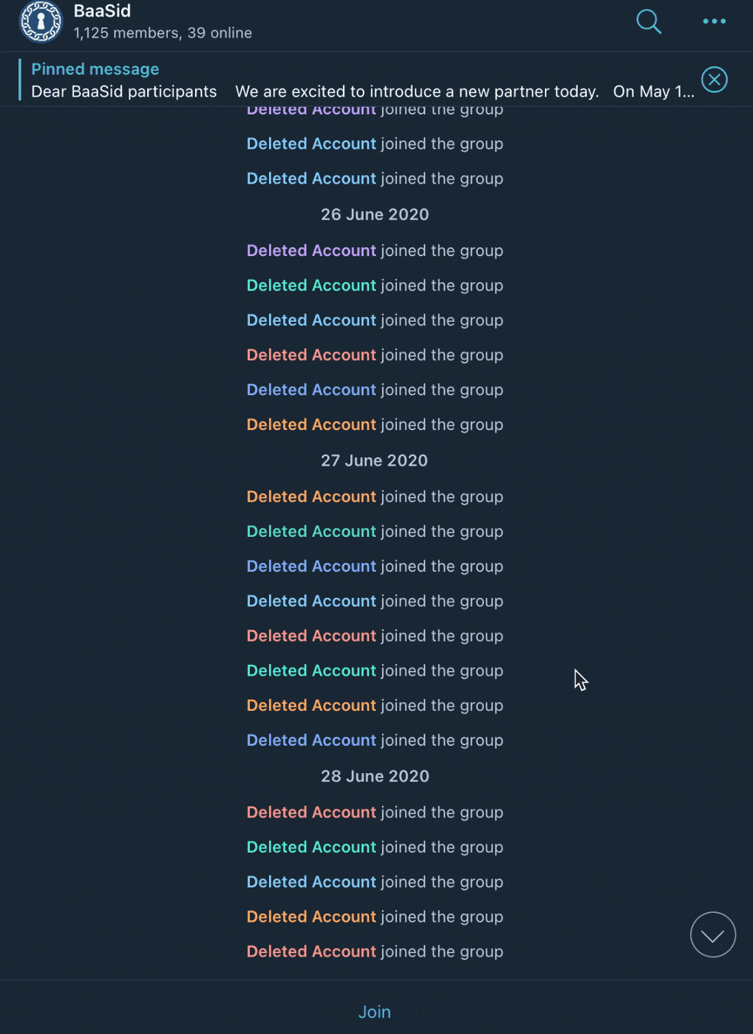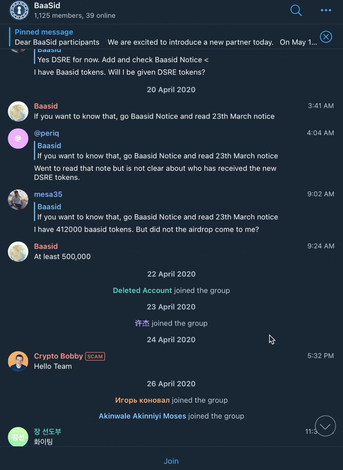 공식 텔레그램방을 들어가서 살펴봤는데 아래와 같이 제대로 관리도 안되고 있습니다. 많은 사람들이 이탈하고 있고, 관리자는 이에 대해서 딱히 설명도 없고, 관리도 안하고 있는 모습입니다.