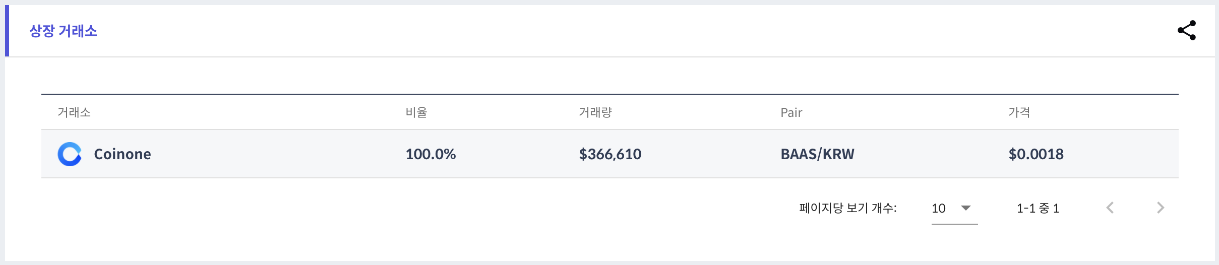 현재 상장 거래소 또한 코인원밖에 없습니다. 코인원에서 모든 물량을 가지고 있는 것을 확인할 수 있습니다.