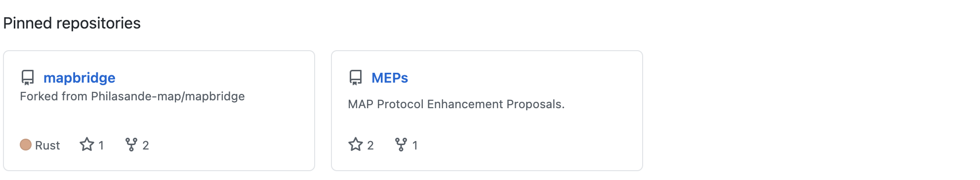 그나마 최근에 업데이트되었던 mapbridge 저장소를 통해 맵 프로토콜 개발팀의 개발현황에 대해서 살펴보도록 하겠습니다. mapbridge 프로젝트는 Philasande-map/mapbridge 프로젝트에서 포크된 것을 알 수 있습니다.