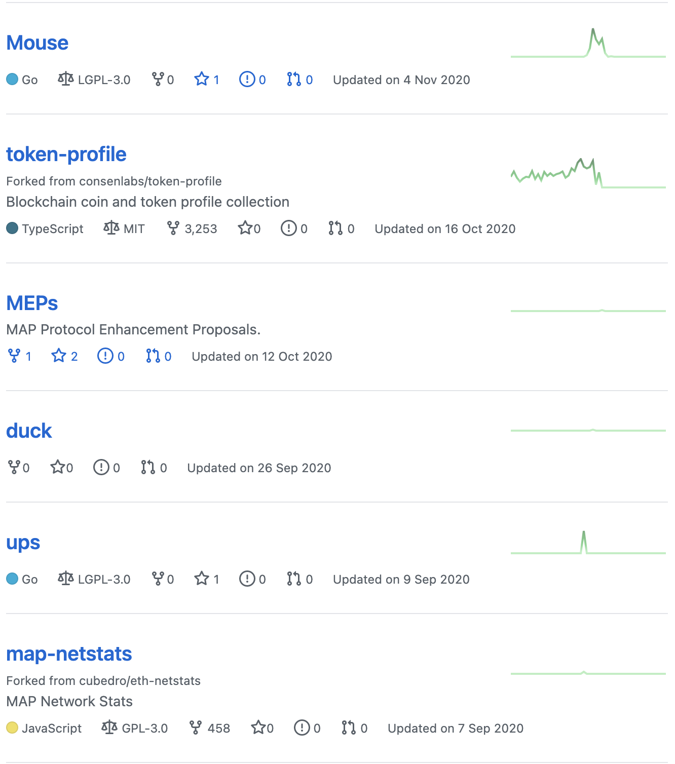 맵 프로토콜 개발팀이 공개한 깃허브 프로젝트의 업데이트 현황을 살펴보면 올해 업데이트되고 있는 프로젝트는 거의 없는 것을 확인할 수 있고, 이 또한 업데이트 빈도수가 굉장히 더딘 것을 알 수 있습니다. 게다가 가장 최근 업데이트된 프로젝트가 24일 전입니다.
