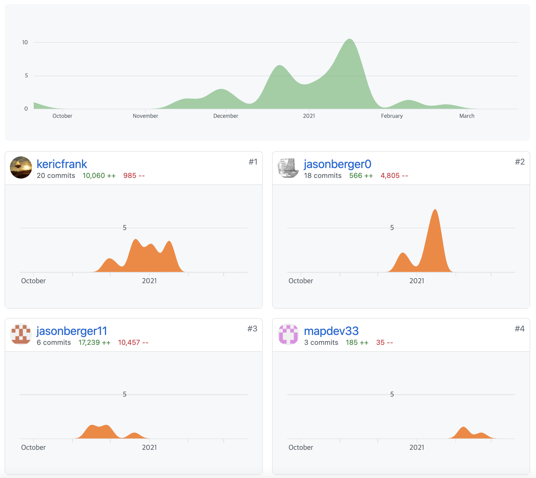 최근 한달동안 프로젝트에서 업데이트된 내용들과 전체 기간동안 프로젝트에 참여한 참여자들을 확인할 수 있습니다.