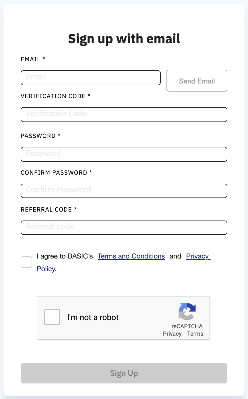 웹사이트 회원가입을 진행한 후 무언가를 해보고 싶어도 레퍼럴 코드가 있어야 가입이 되는 구조였습니다. (제가 베이직 생태계를 잘 이해하지 못해서 모르는 부분이 있을 수 있습니다. 틀린 부분이 있다면 알려주세요!)