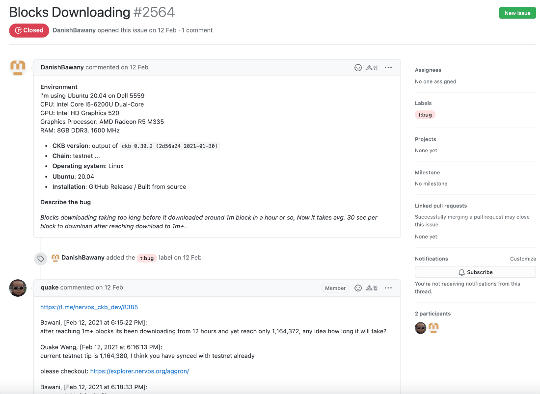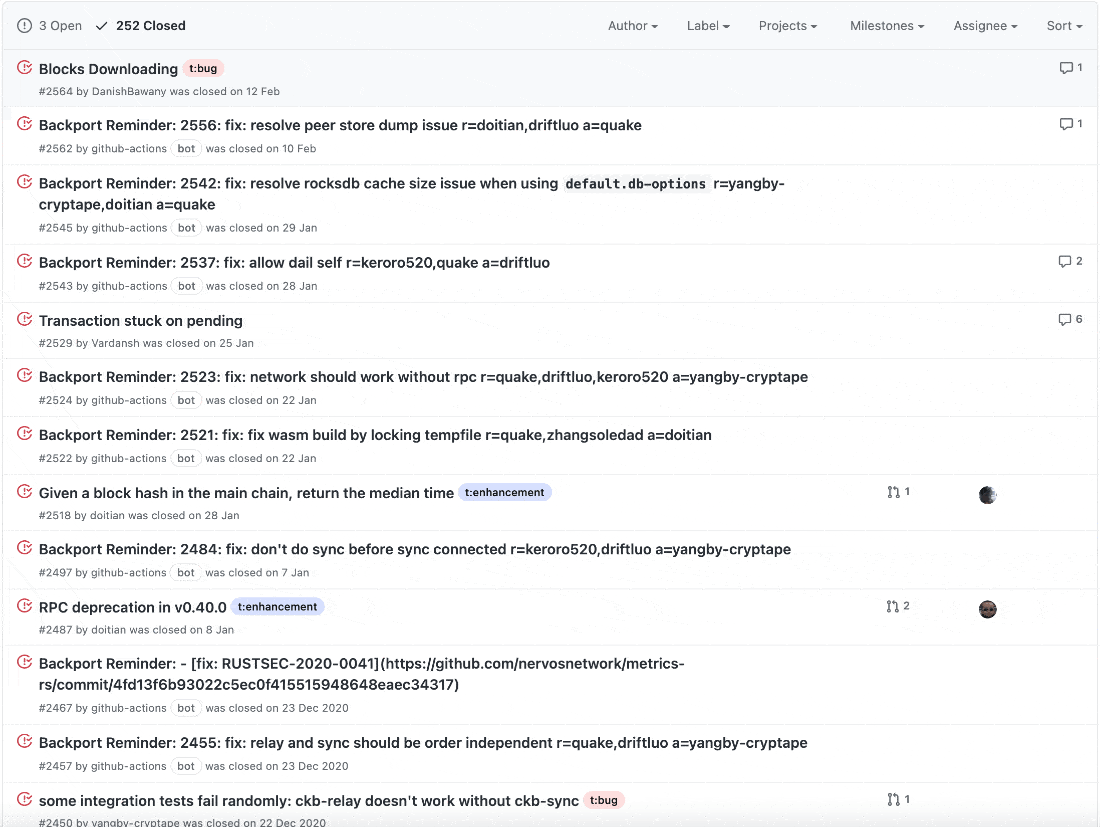 프로젝트에서 가장 중요한 부분은 개인적으로 버그나 개선사항이 생겼을 때 이슈를 작성하고 관리하는 것이라고 생각합니다. 이슈를 활용해서 프로젝트에서 발생되는 모든 문제들을 관리할 수 있습니다. 프로젝트에서 이슈들까지 제대로 관리하고 있다면 해당 코인을 개발하는 개발진들의 개발 참여도는 굉장히 긍정적으로 보인다고 말씀드리고 싶습니다.
