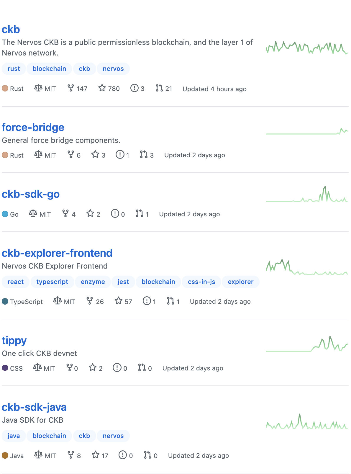 너보스 네트워크(CKB, Nervos Network) 코인 개발 현황을 한번 살펴보도록 하겠습니다. 너보스 네트워크 깃허브 프로젝트는 아래 링크에서 확인할 수 있습니다.