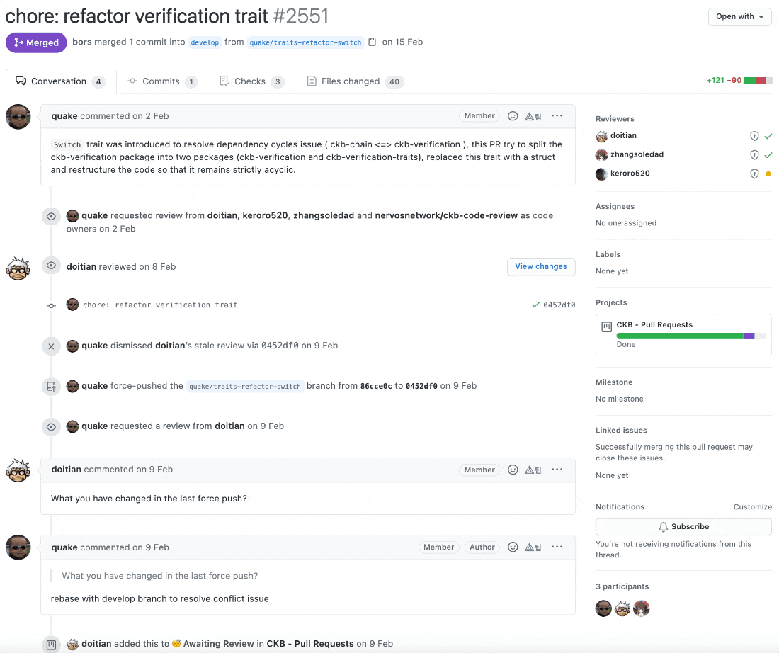 너보스 네트워크 코인에 투자를 하시려는 투자자분들은 오늘 포스팅을 어떻게 보셨나요? 너보스 네트워크 개발팀이 공개한 프로젝트들을 통해 개발 현황에 대해서 살펴볼 때 커밋, 이슈, PR 등 다양한 지표로 판단하고 있는데 개발 자체는 정말 열심히 잘 진행하고 있는 것을 확인할 수 있습니다. 개인적인 판단으로 개발 수준 또한 상당하다고 생각합니다. (이정도 개발 현황을 보여줘야 투자자들이 안심하고 미래가치를 생각하고 투자를 할 수 있죠. 백서만 작성하고 제대로 개발도 안하면서 마케팅으로 코인 시세만 높이려고 안달난 곳은 정말 반성해야 합니다.) 단지 ckb 저장소 하나만 살펴보긴 했지만 하나를 보면 열을 안다는 속담이 있듯이 이렇게 프로젝트를 제대로 관리하는 모습을 보면 다른 프로젝트들도 비슷한 수준으로 관리되거나 개발되고 있겠죠.