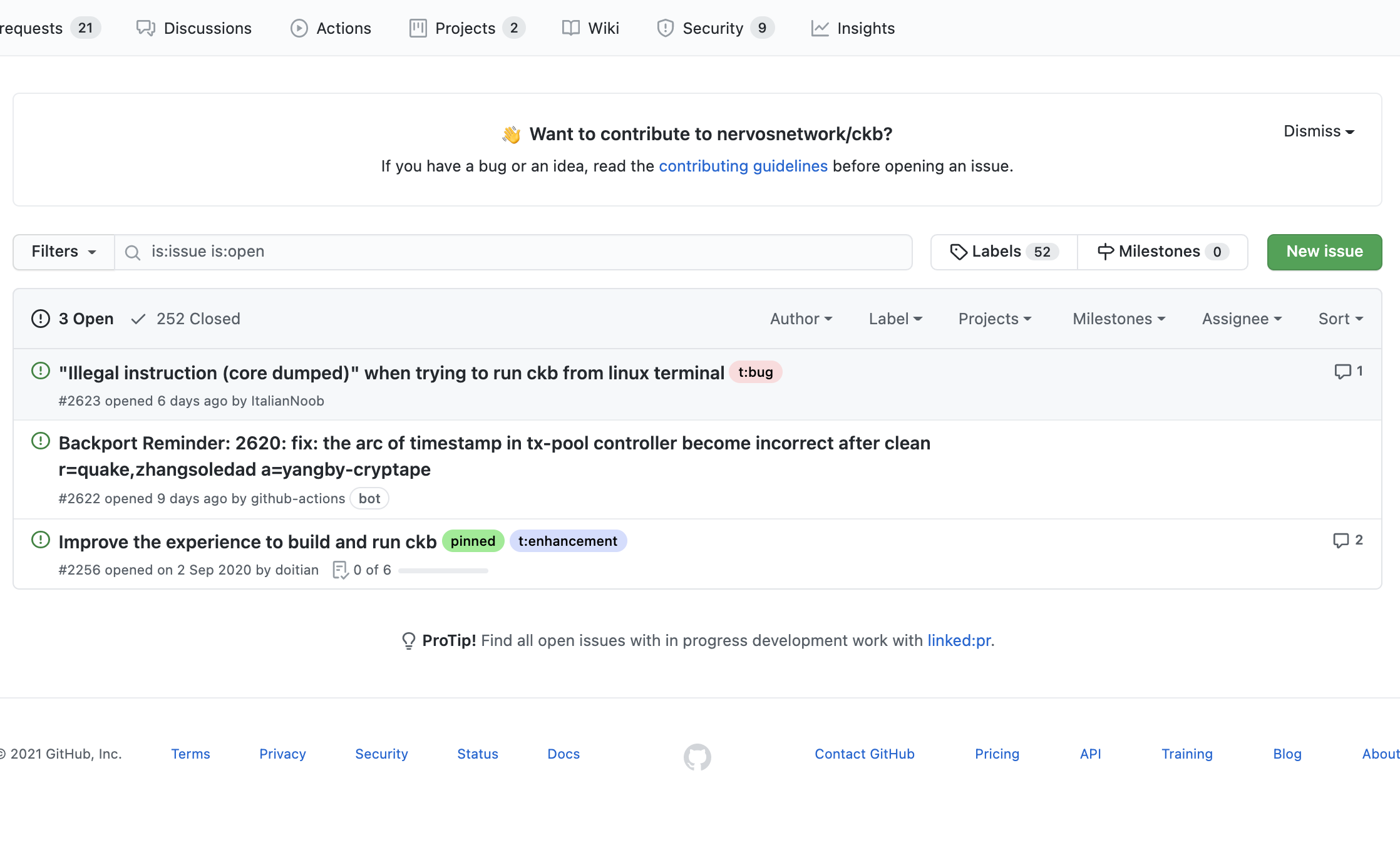 현재 프로젝트에서 열려있는 이슈는 3건이고 해결된 이슈는 총 252건입니다.