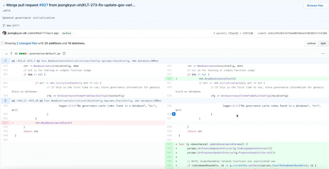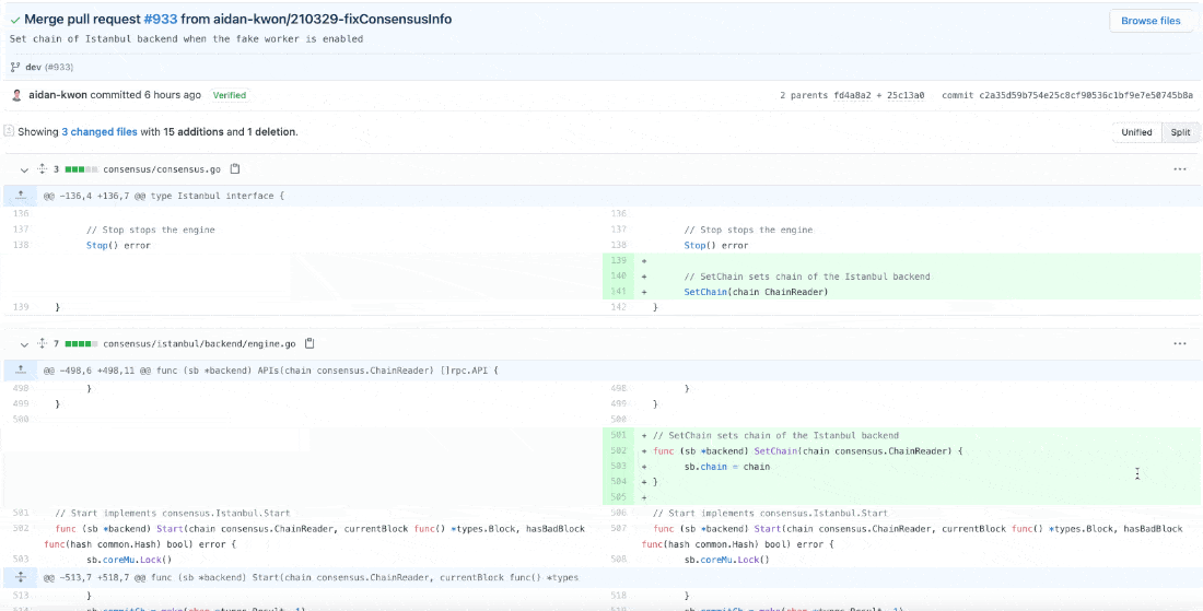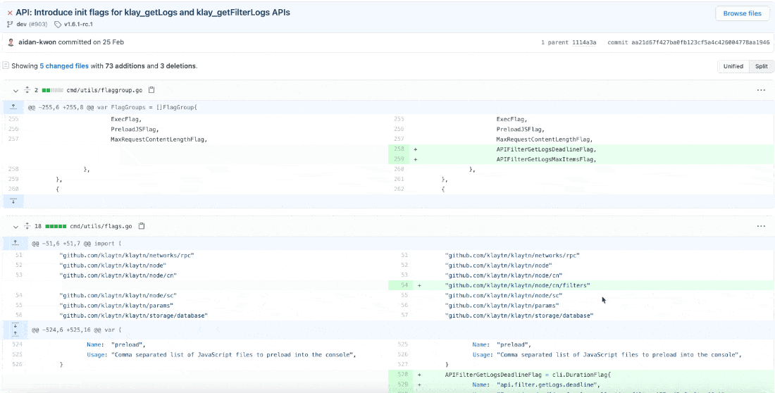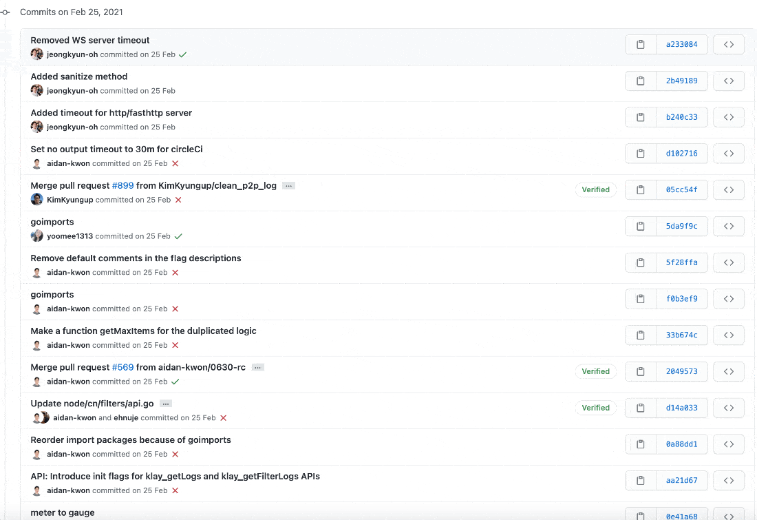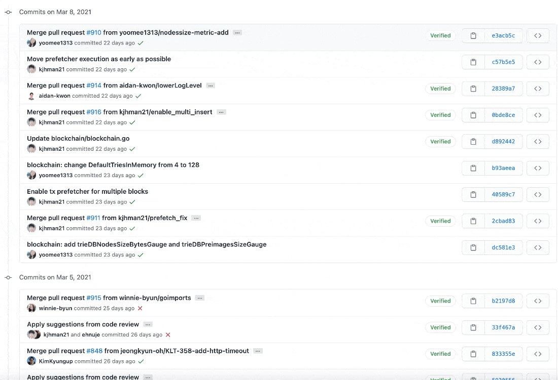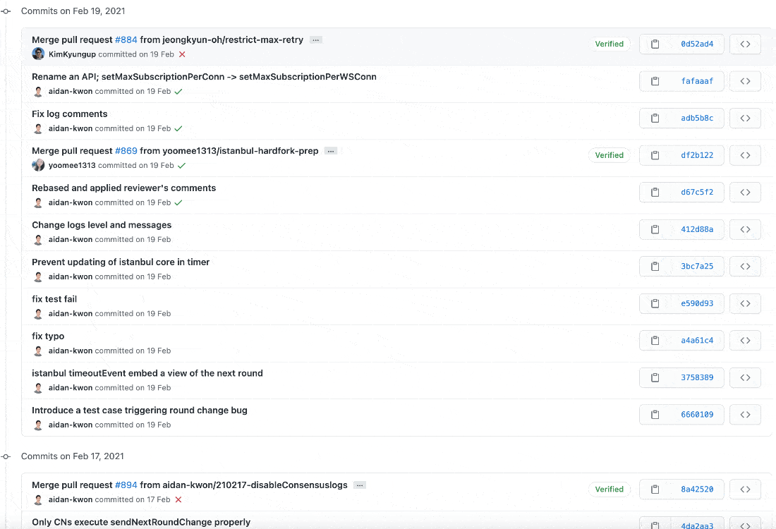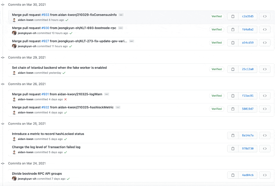 커밋 메시지를 살펴보면 클레이튼 개발팀은 메시지를 굉장히 명시적으로 잘 작성해주고 있는 것을 확인할 수 있습니다.