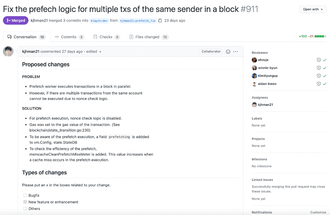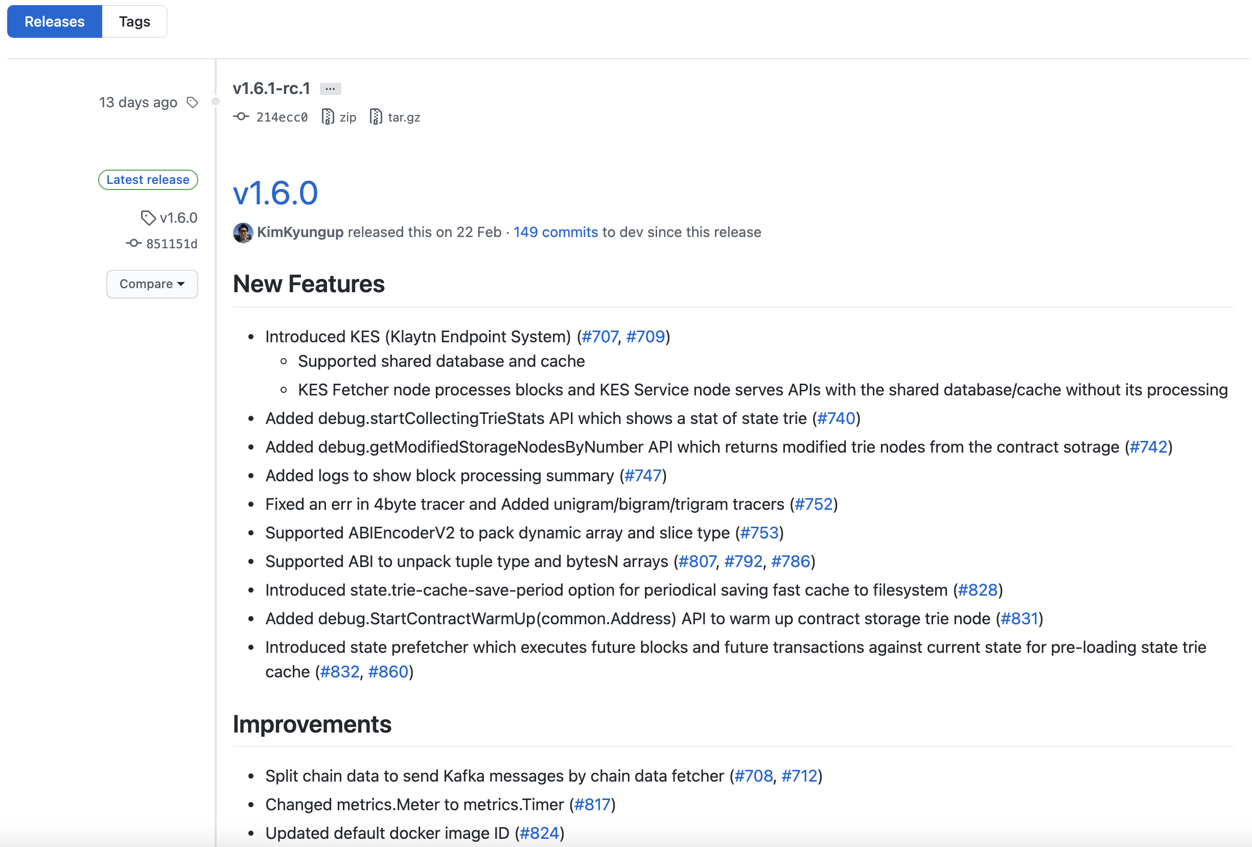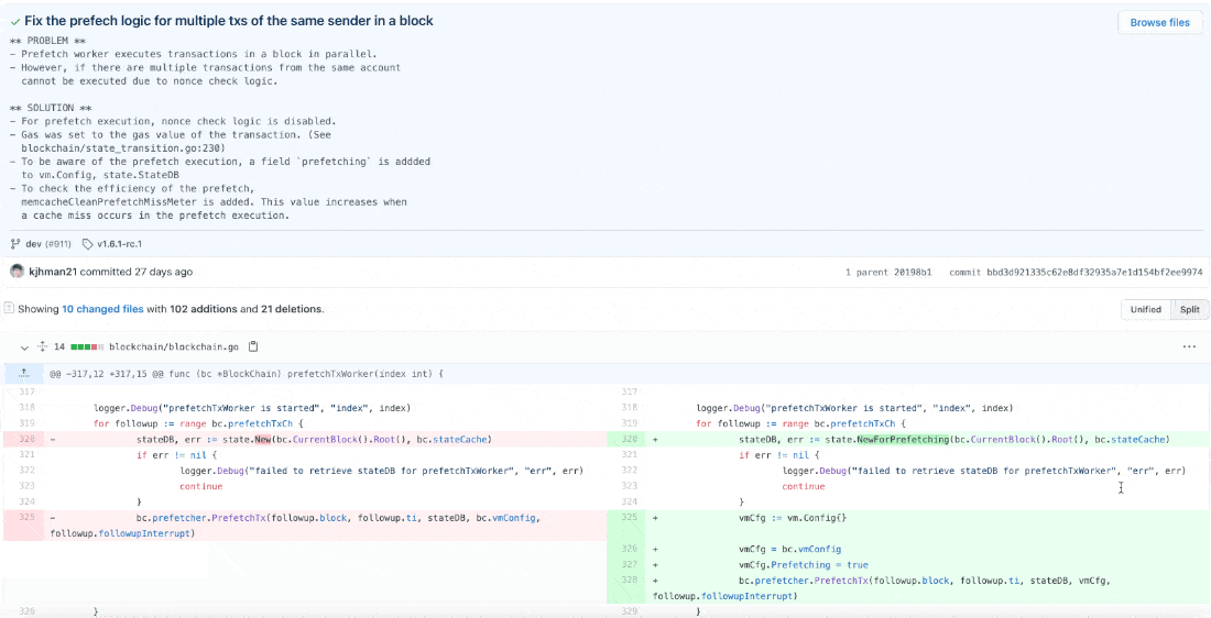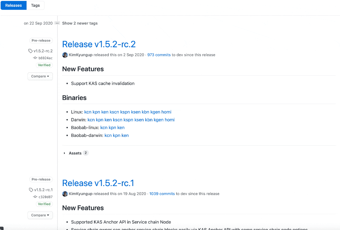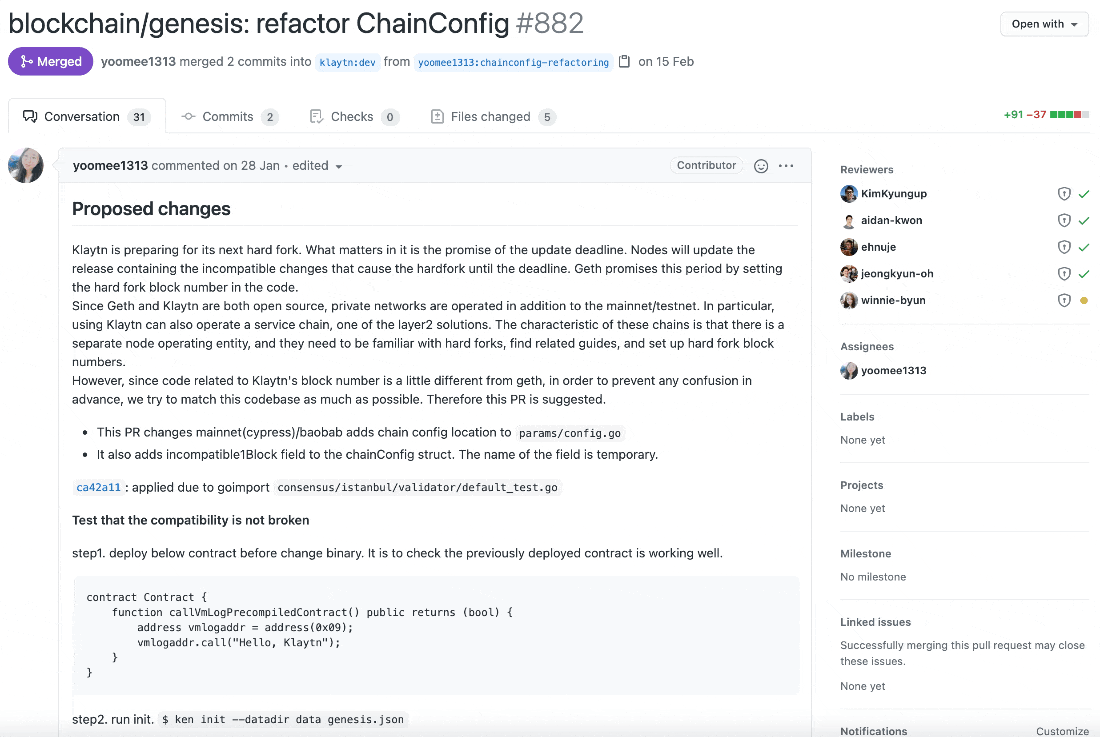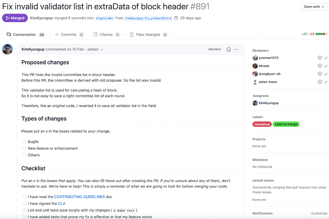 커밋 메시지를 살펴보면 클레이튼 개발팀은 메시지를 굉장히 명시적으로 잘 작성해주고 있는 것을 확인할 수 있습니다.